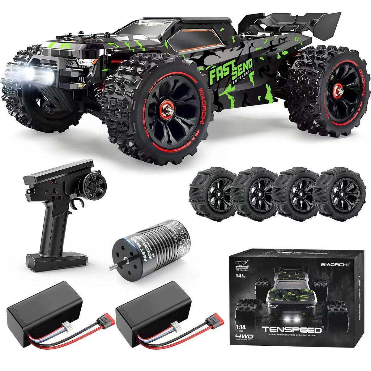 - Release the Monster: This 4x4 RC car can reach an amazing speed of fast 50+ mph (80 km/h), rocketing from 0 to 80 km/h in mere seconds thanks to its 3S power. Dual batteries push your fun to the limit with an incredible 44 minutes of extended playtime!