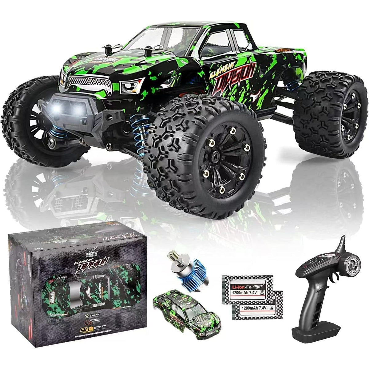 - The high grip knobby off-road tires with classic carefully designed tires threads and newly hub metal sheet provide versatility and strong grip for any terrain. This remote control truck will make you become the focus in the racing.
