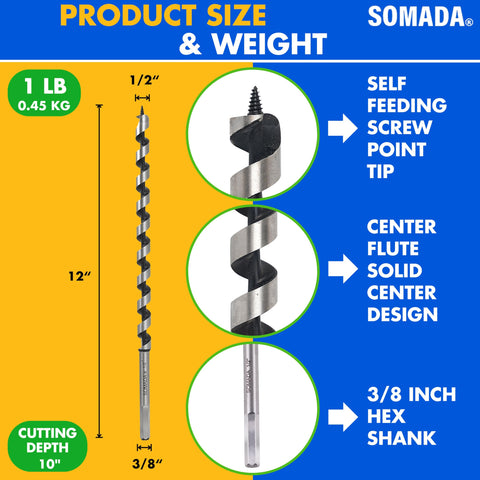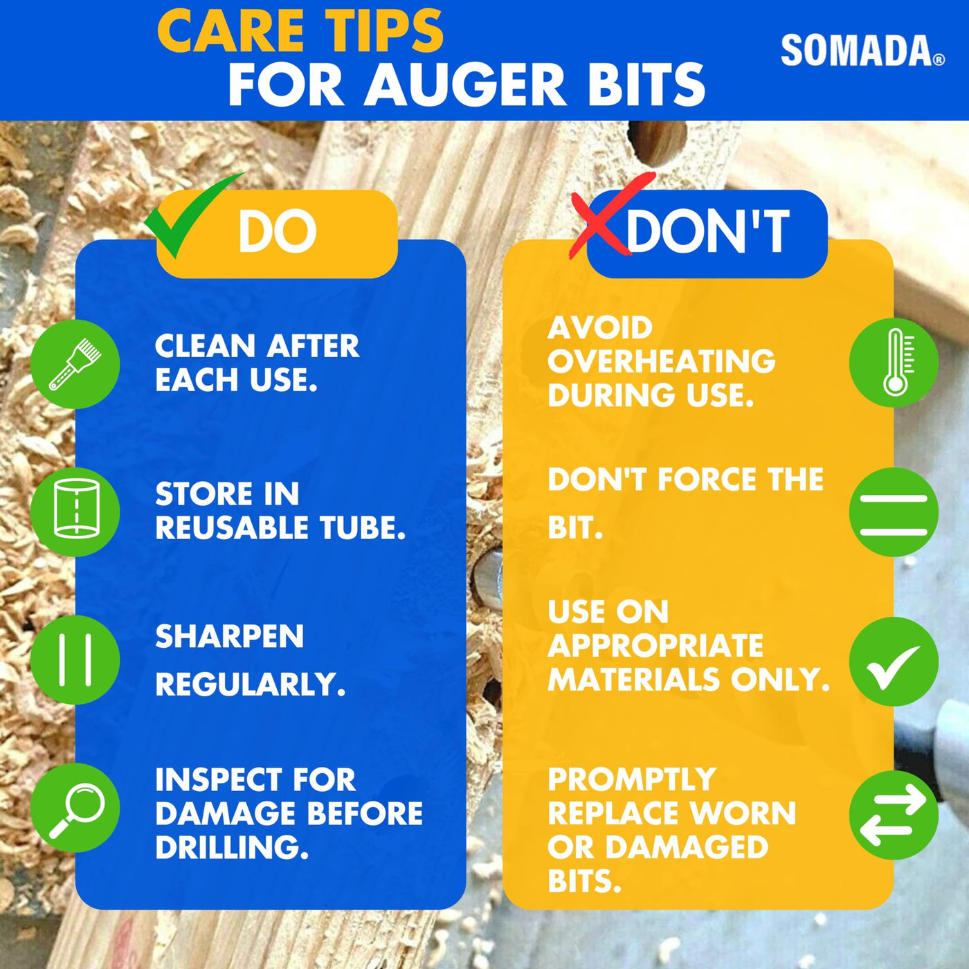 - ๐Advantages of SOMADA Auger Bits: Opting for an auger bit ensures the ability to bore deep and seamless holes in wood, plastic, and various other materials. The screw tip facilitates a safer and smoother initiation compared to spade or paddle bits.