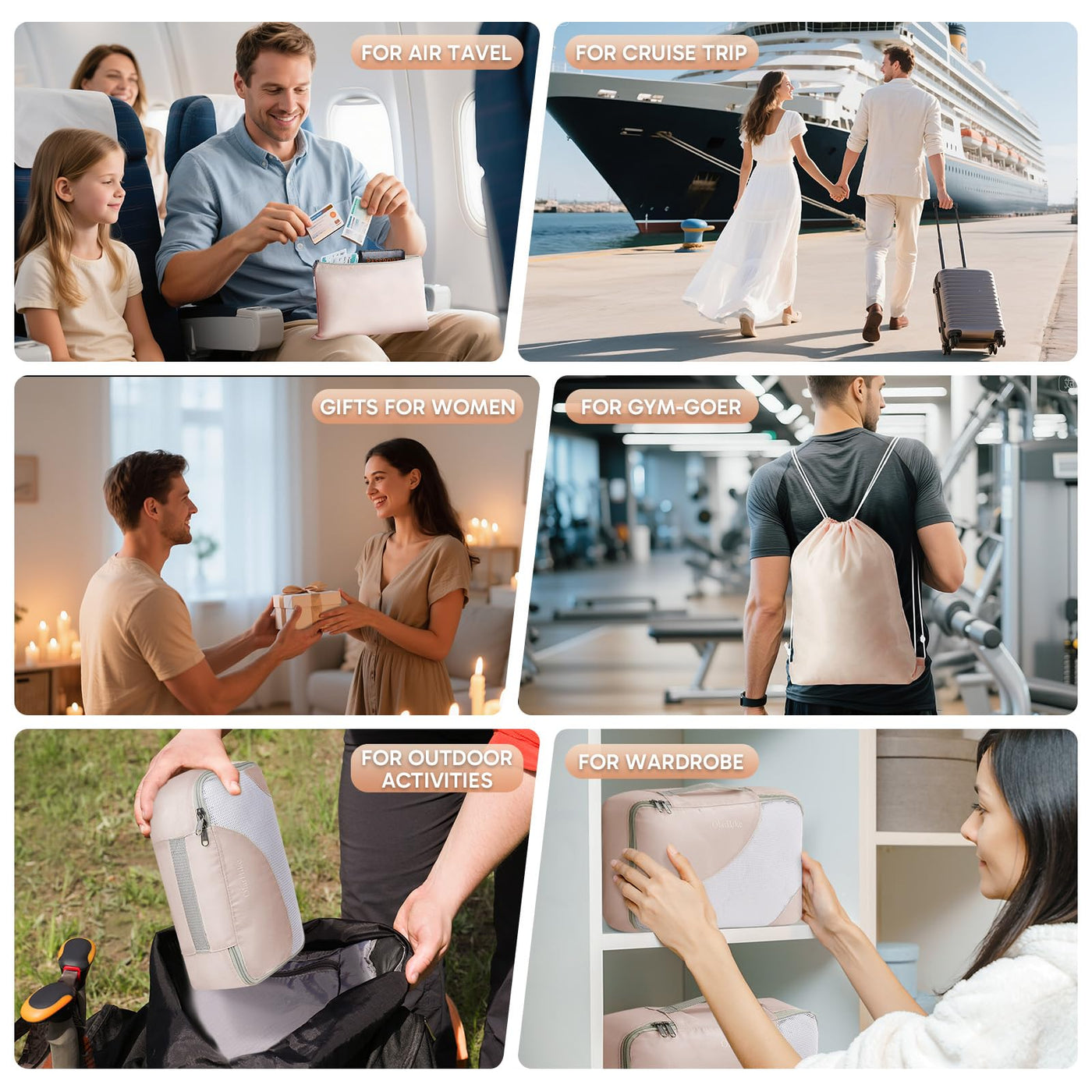 10 Set/8 Set Packing Cubes for Travel, Gifts for Women Mom,Anti-Tearing Suitcase Organizer for Luggage with Shoe & Hanging Toiletry Bag,OlarHike Vacation Essentials & Accessories for Cruise Ship,Cream Sale