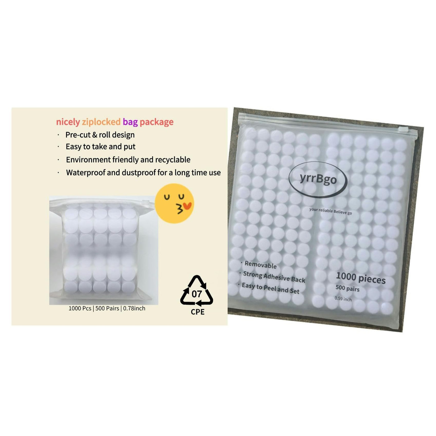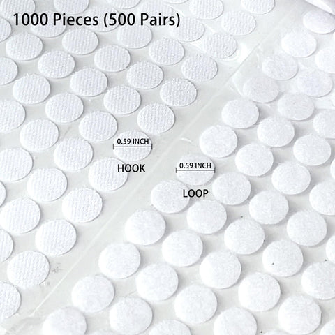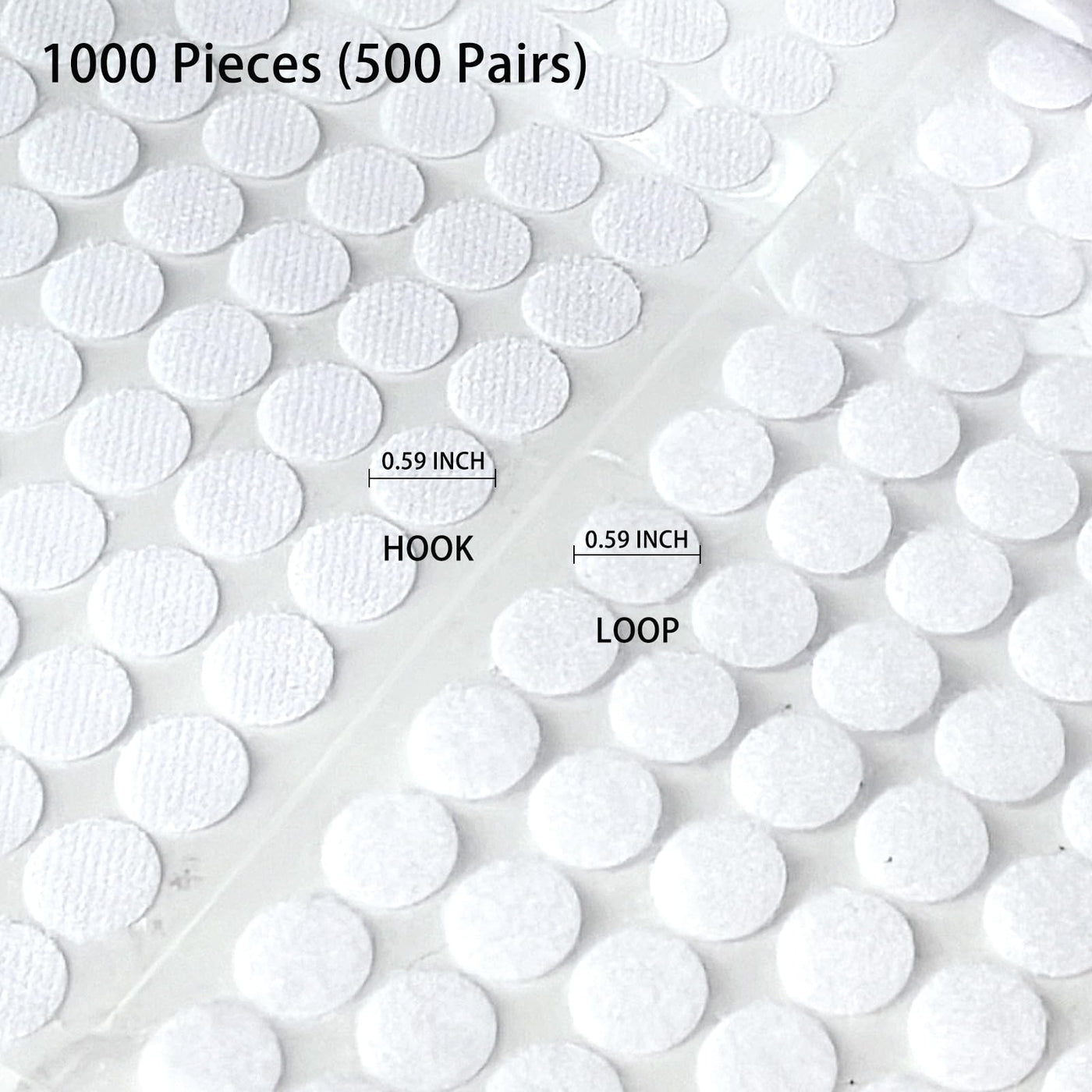 1000 Pcs(500 Pairs) 0.59inch Diameter Strong Sticky Round Nylon Dots, Hook and Loop Circle Dots with Adhesive, for Arts and Crafts Classroom, Office, Home