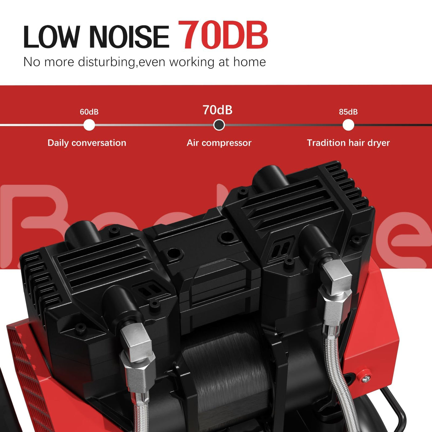 - 70dB Quiet Air Compressor: This ultra silent air compressor is equipped with a thickened muffler and high - density filter cotton, it effectively cuts operational noise down to a maximum of 70dB, about the volume of normal conversation. Ideal for workshops and homes. The filter cotton not only cuts noise but also blocks fine dust, ensuring quiet operation and long - term reliability.