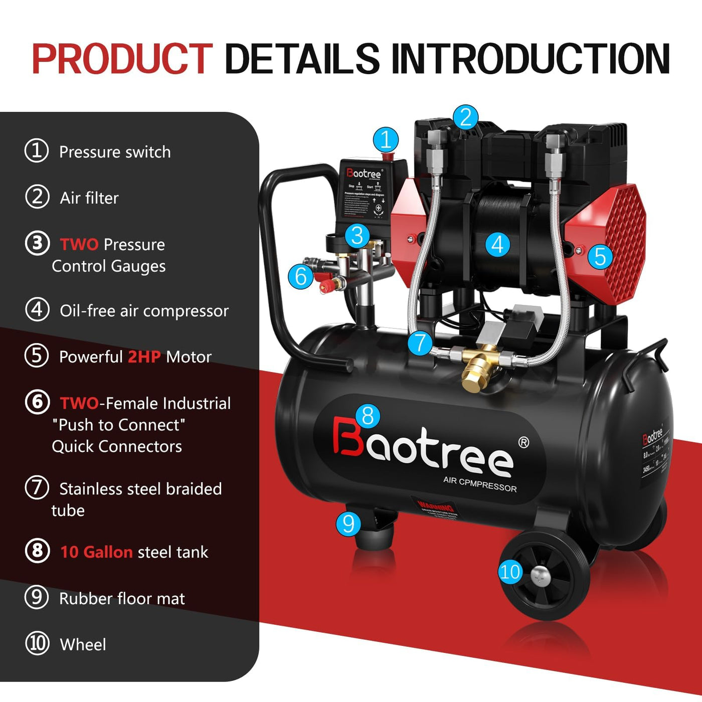 Details: 10 Gallon Ultra Quiet Air Compressor