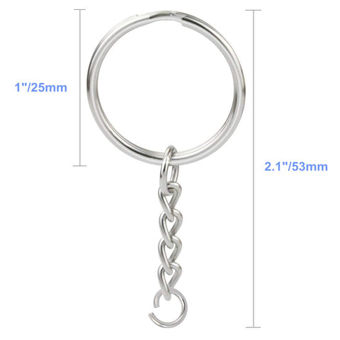 Details: NANSSY 150 Pcs 1"/25mm Metal Key Split Chain Ring with Chain Silver Key Ring, Key Chain Ring Parts, Open Jump Ring and Connector