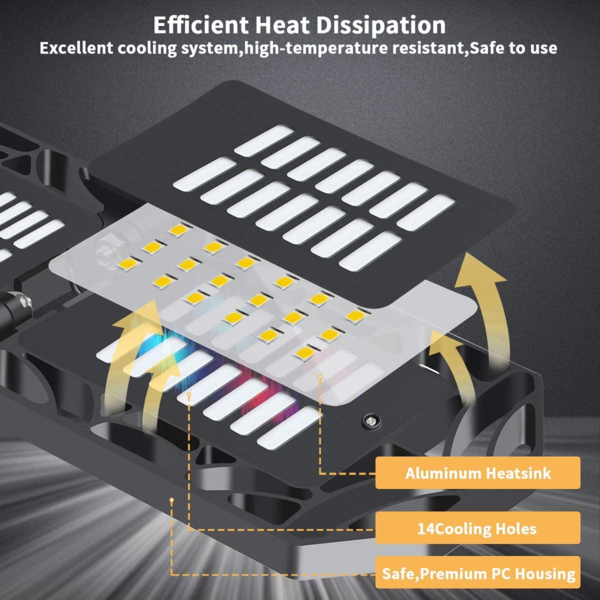 - 【Multiple Adjustable Design Shadowless Lamp】Unlike other lights which can only be folded once,Our panels can be stretched and folded twice in different directions like spiders to achieve multi angle adjustment from 120 degrees to 240 degrees. This design can eliminate shadows and improve the quality of lighting. You can adjust to any lighting angle you want, especially suitable for work and maintenance.