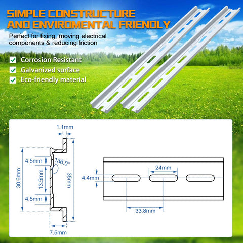 - 【BEAUTY OF DIN RAIL SYSTEM】- It’s meant to work with to a series of universal standard widths and shapes of electrical and industrial products , such as relays, circuit breakers, terminal blocks, motor controllers, power supplies, contactors and so on