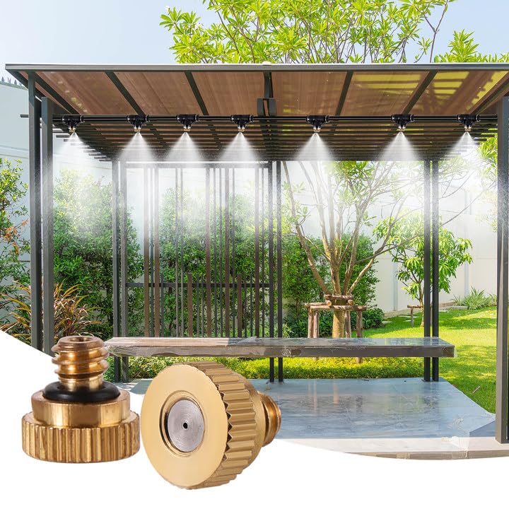 20 Pack Brass Misting Nozzles with 20Pc Brass Misting Nozzles O Ring,Heavy Duty Misting Nozzle 0.02" Orifice (0.5 mm)10/24 UNC for Outdoor Cooling System Dust Control
