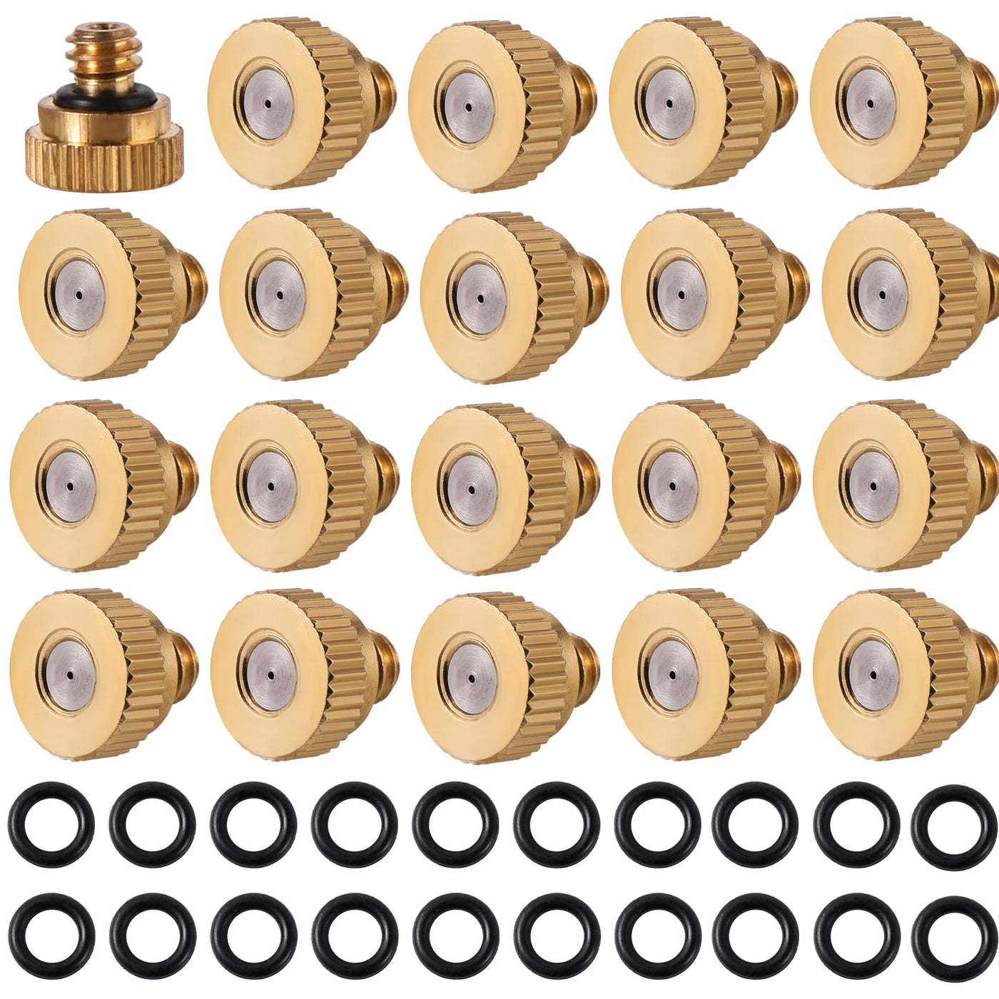 20 Pack Brass Misting Nozzles with 20Pc Brass Misting Nozzles O Ring,Heavy Duty Misting Nozzle 0.02" Orifice (0.5 mm)10/24 UNC for Outdoor Cooling System Dust Control Sale