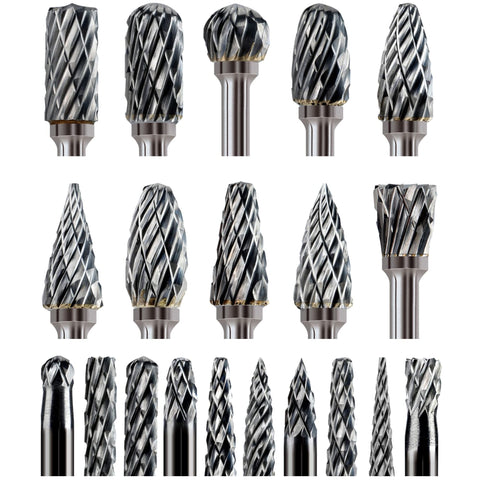 20 Pcs Carbide Burr Bits 1/8" Shank Compatible with Dremel Milwaukee Metal Grinding Wood Stone Steel Carving Cutting Engraving Grinder Kit Attachment Rotary Tool Accessories Set Harder than Diamond Sale