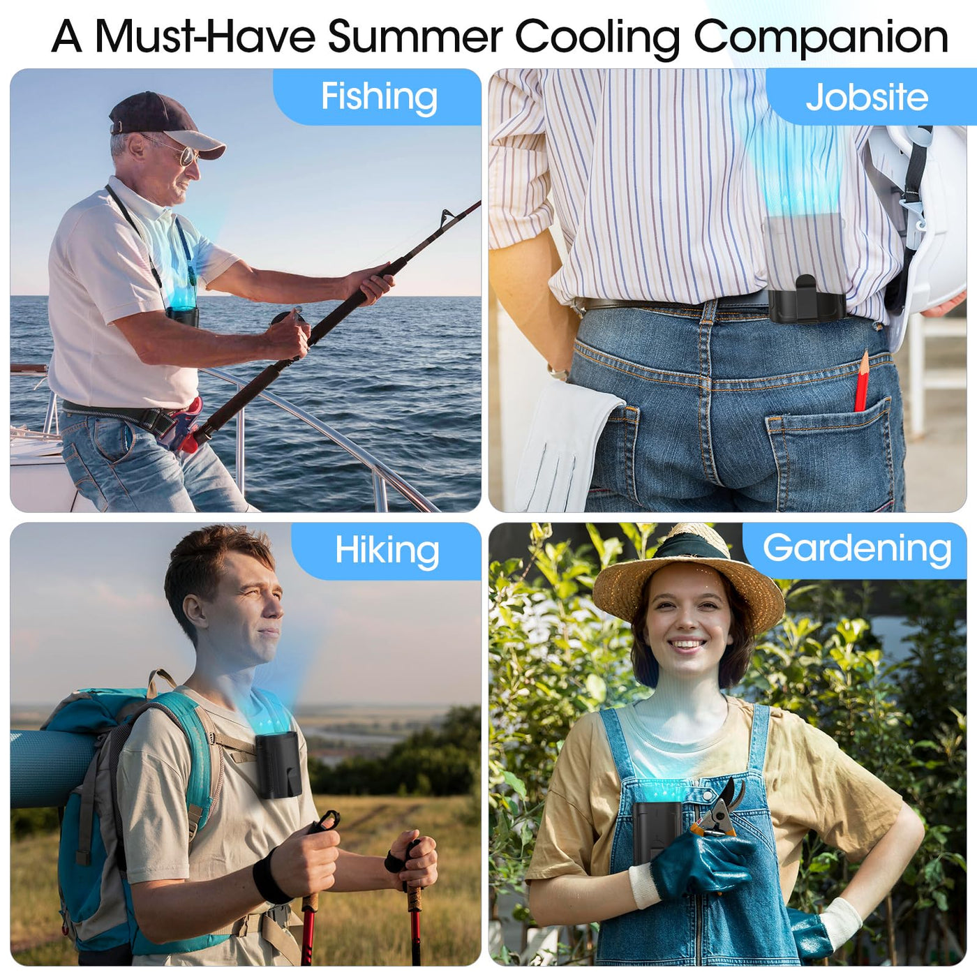 - [Your Summer Essential] Compact and lightweight, our clip on fan fits easily into your backpack or clips to your belt, making it your go-to companion for outdoor adventures. Whether you're fishing, hiking, camping, or biking, this fan will keep you comfortable all day long. It's also an ideal choice for workers in construction, kitchens, farms, and warehouses