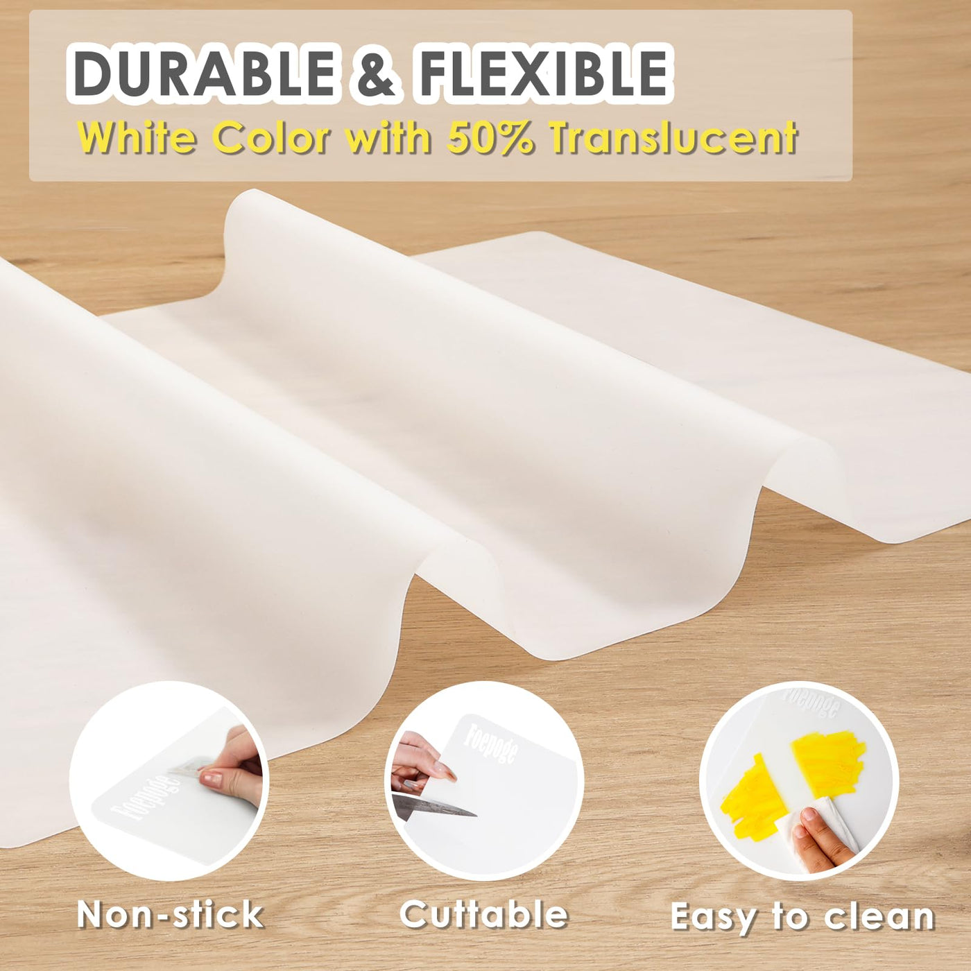 - Great Heat-Resistant: The large silicone mat heat resistant can bear the temperature from -30 up to 210℉. Extra thick design provides a better heat insulation effect than other flimsy silicon mats. You can use these thick silicone craft mats for hot glue and heat press. Or put the multipurpose clear countertop protector mat under the air fryer as unobtrusive countertop protector in the kitchen, the translucence can show your beautiful counter surface.