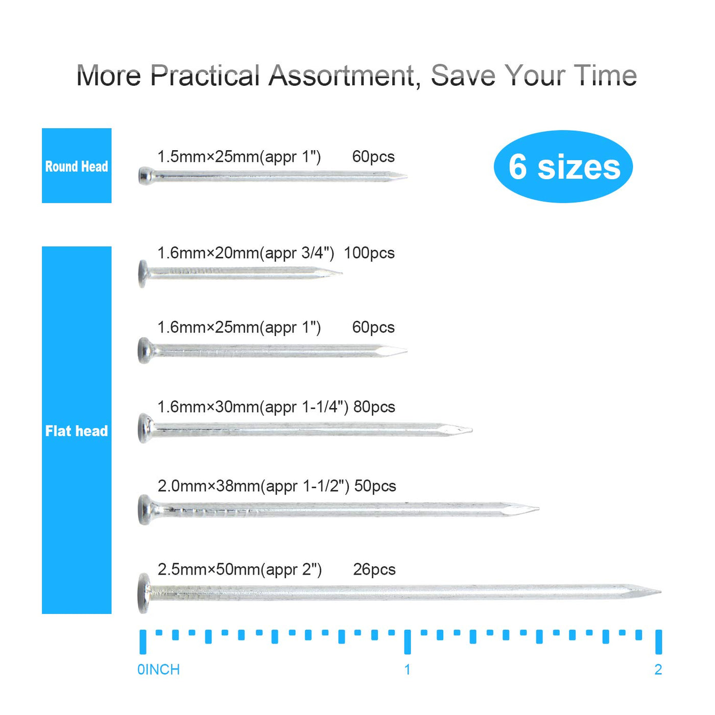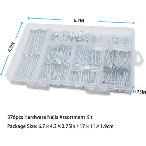 - Various Size: A kit includes six sizes( 2", 1-1/2", 1-1/4", 1", 3/4" ) of hardware nails, with 376 nails in each kit to suit your diverse projects.