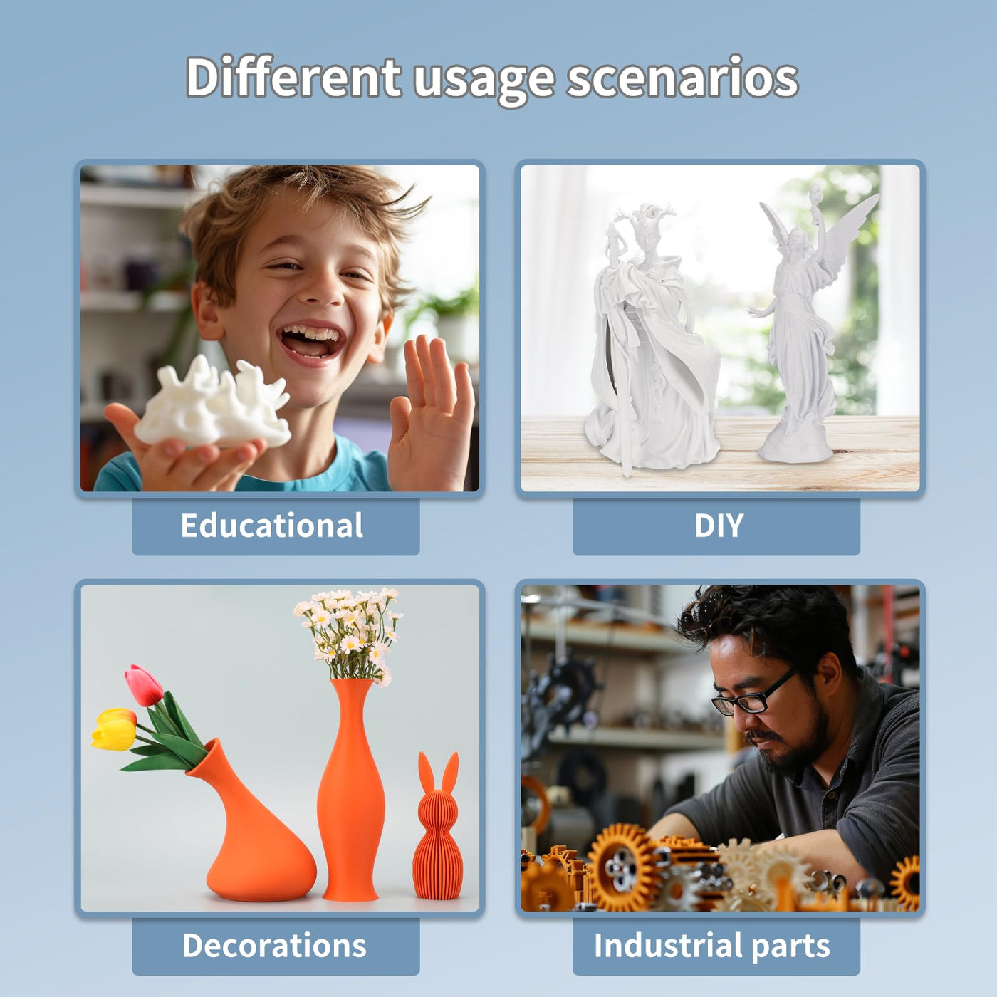 - 【High Compatibility】Compatible with Most of FDM 3D Printers, such as:Bambu Lab P1P /X1/H2D, AnkerMake M5, Voron 2.4, Raise3D, Prusa, Creality Ender 3 and Ender 7. Recommended printing settings :Printing Temperature: 190-230℃ (Recommended Temperature 215℃) Bed Temperature: 45-60°C Fan Speed: 100% Recommended Printing Speed: 40-300mm/s.