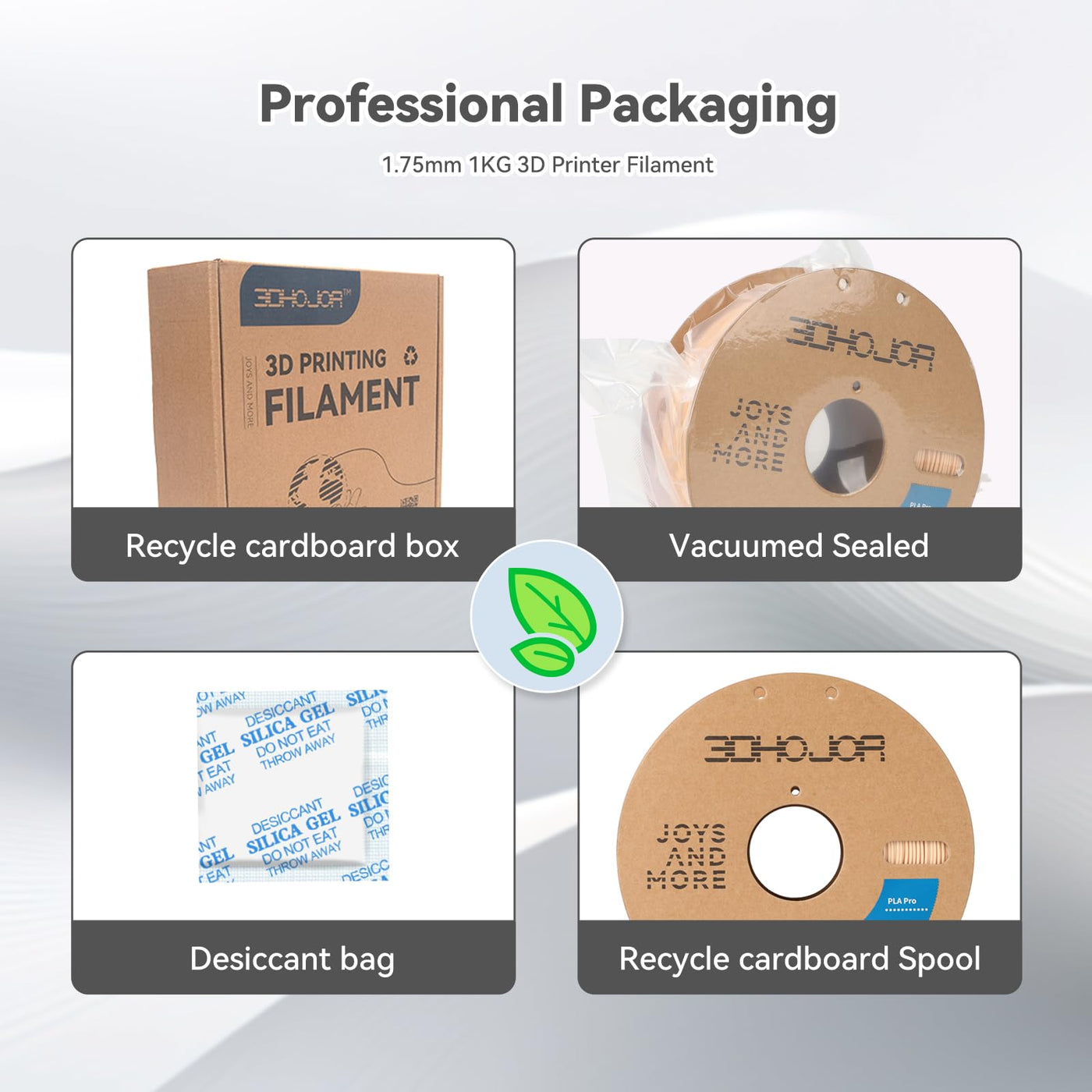 - 【Environmentally Friendly】Extracted and purified from corn grain and harmless to the human body. Low Odor and Non-toxic ; 3DHoJor PLA Pro 1.75mm Filament with Recycle carboard Spool.