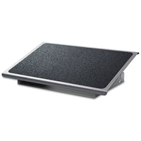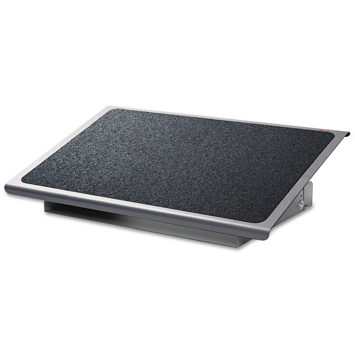 The 3M Adjustable Footrest in Charcoal gray, heavy-duty steel provides stable, adjustable foot support to reduce strain and fatigue on the legs, back and neck. The extra-wide platform is height- and tilt-adjustable and features a slip-resistant surface that keeps feet from sliding around.