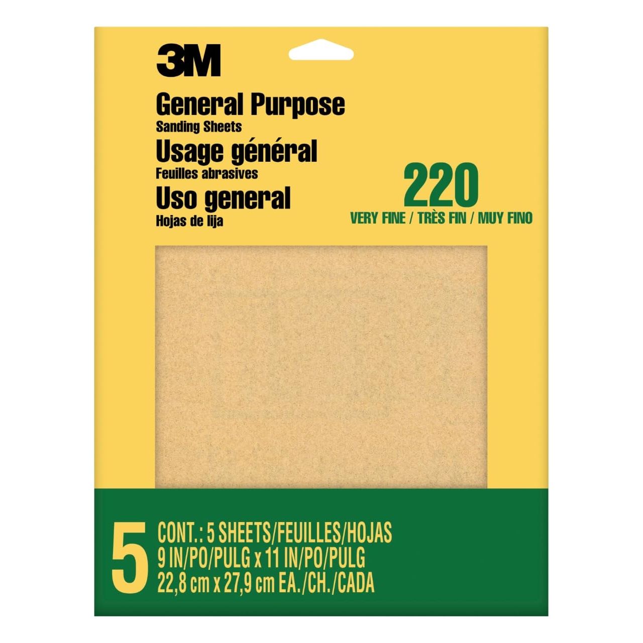 3M(TM) sandpaper comes in a variety of minerals and a wide grit range. This very fine-grit aluminum oxide sandpaper is a general purpose abrasive that can be used on painted surfaces, bare wood, and metal. The 9-Inch by 11-Inch sheets can be cut to size to use by hand, on a sanding block, or a power tool sander. Sanding is an integral step in preparing a surface to receive a coating. For the best sanding results, sand with the grain of the wood and work through a sequence of grits, from coarse to very fine.