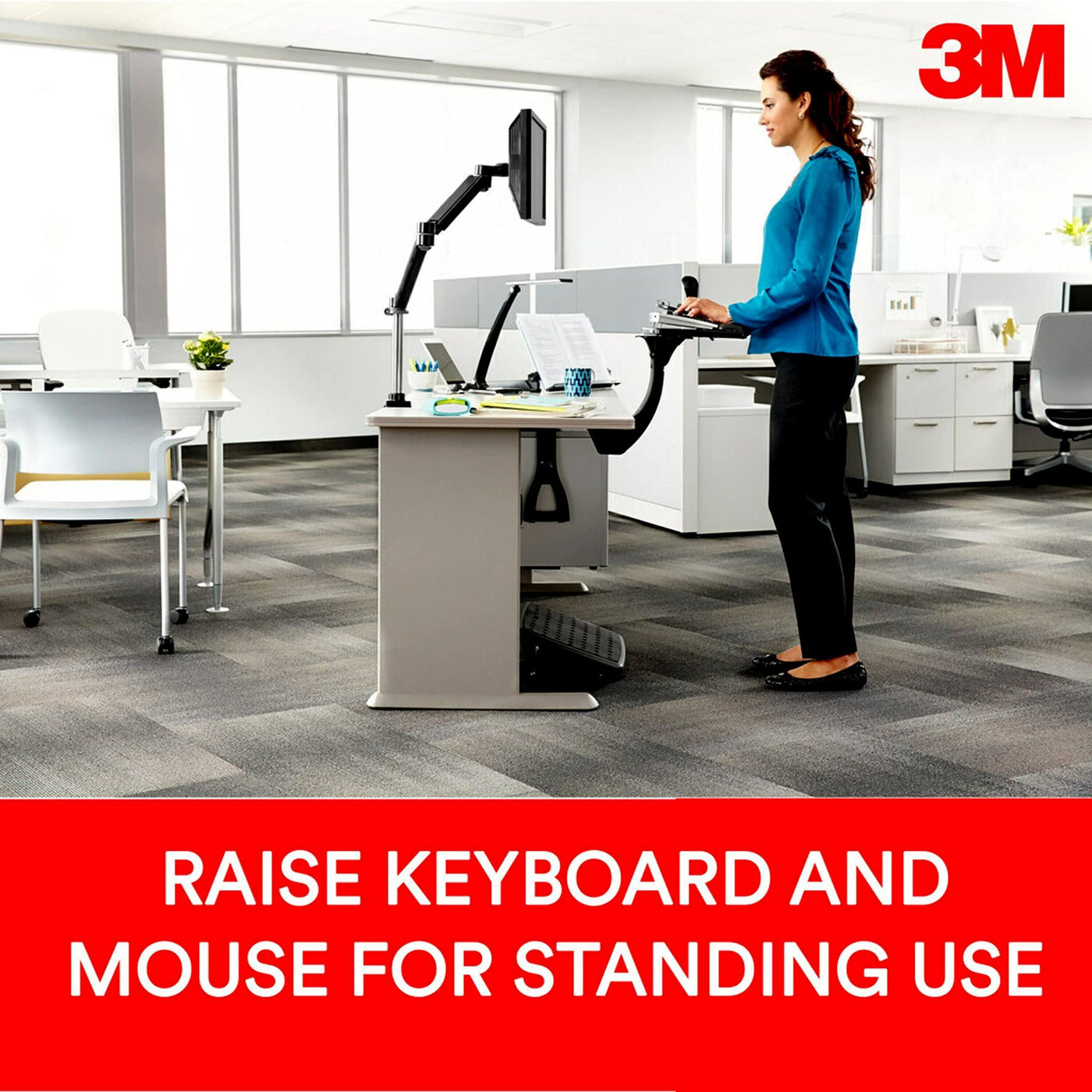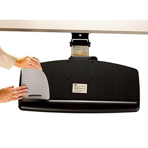 The 3M Sit/Stand Easy-Adjust Keyboard Tray offers a customizable solution for maximum flexibility and comfort at your workstation. Mounted under your desk to save space, this keyboard tray provides a sturdy keyboard surface on which you can work with ease. The Sit/Stand Easy-Adjust Keyboard Tray works with corner and straight workstations and allows you to adjust the tilt and height of your keyboard position to achieve optimal ergonomic benefits. The included all-in-one Standard Platform offers a Precise mousing surface and an all-wood construction that minimizes instability as you type. The 3M Sit/Stand Easy-Adjust Keyboard Tray is backed by a five-year warranty.