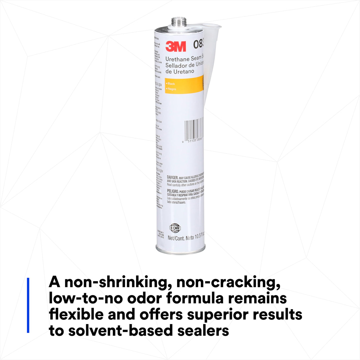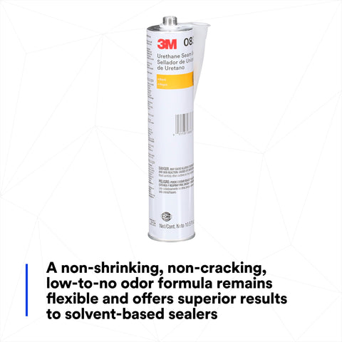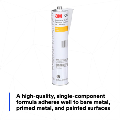 Details: "3M Urethane Seam Sealer 08367 is a high-solids seam sealer ideal for sealing automotive and RV seams and joints. It adheres well to bare metal, primed metal and painted surfaces, and if desired can be smoothed to a featheredge and/or brushed. Tack free and paintable after 30-45 minutes, this urethane formula is permanently flexible and offers superior performance to solvent-based sealers. Cure Time: 24 Hours Work Time: 10 Minutes".