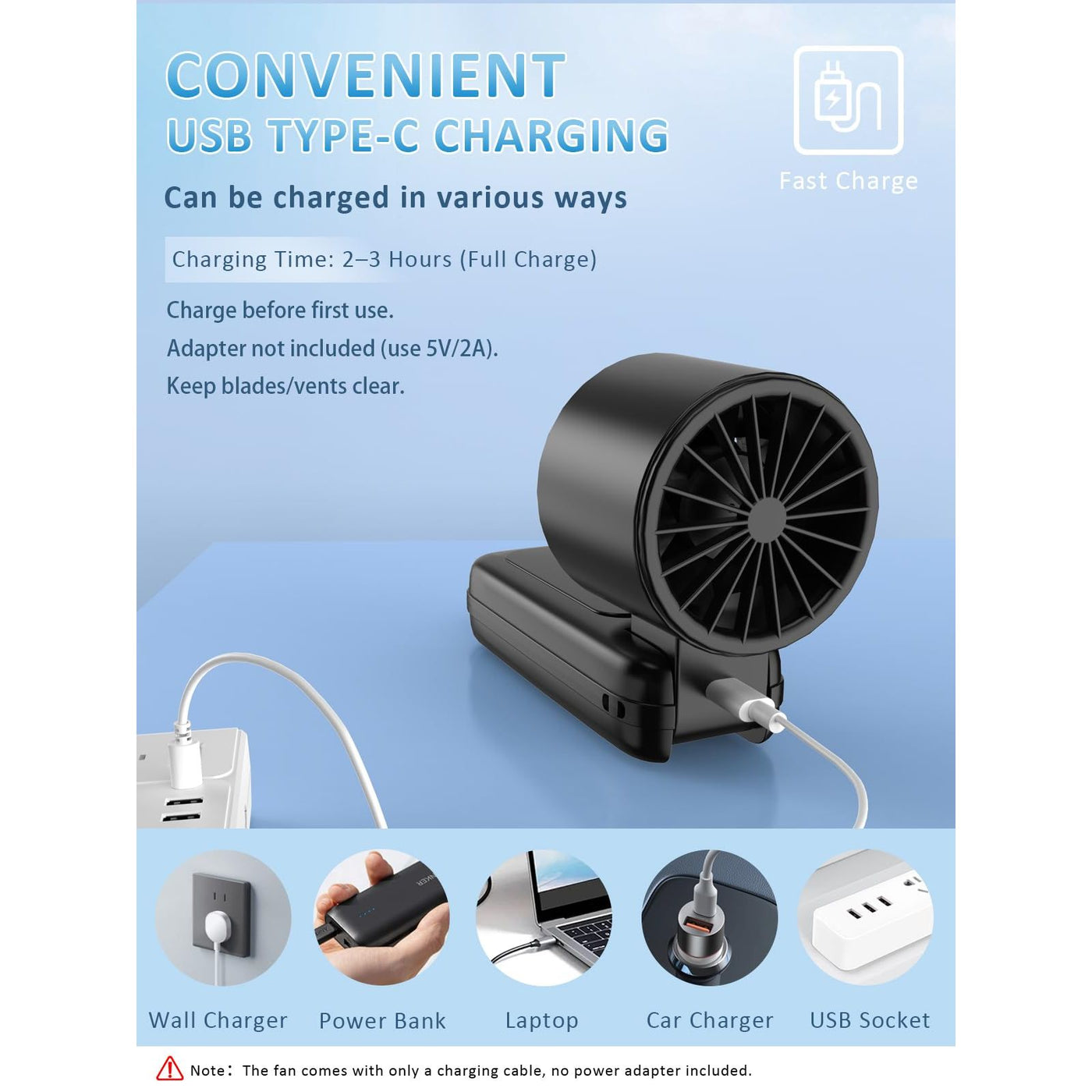 - 5000๐๐จ๐ ๐น๐๐๐๐๐๐๐๐๐๐๐ ๐ฉ๐๐๐๐๐๐, ๐ผ๐ ๐๐ 15๐ฏ ๐ผ๐๐ Runs up to 15 hours depending on speed level. Fully recharges in 2โ3 hours via fast Type-C charging. Compatible with USB ports on laptops, power banks, and cars.