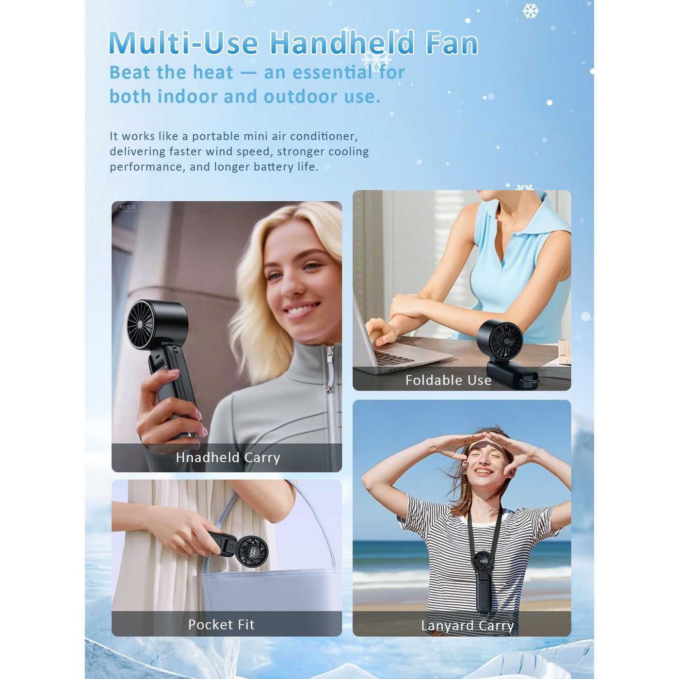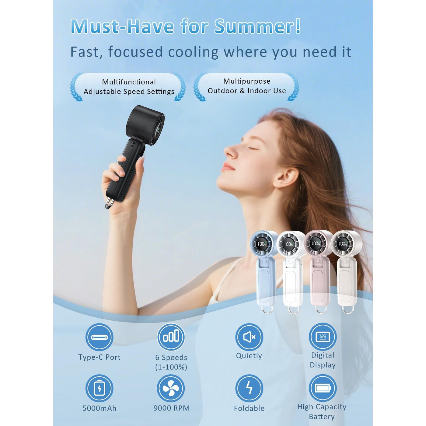 - 4-๐๐-1 ๐ด๐๐๐๐-๐ผ๐๐ ๐ท๐๐๐๐๐๐๐ ๐ญ๐๐ Easily switches between handheld, neck, clip-on, and desk fan modes. Its 180ยฐ foldable design and compact size make it perfect for travel, work, outdoor use, and hot weather.