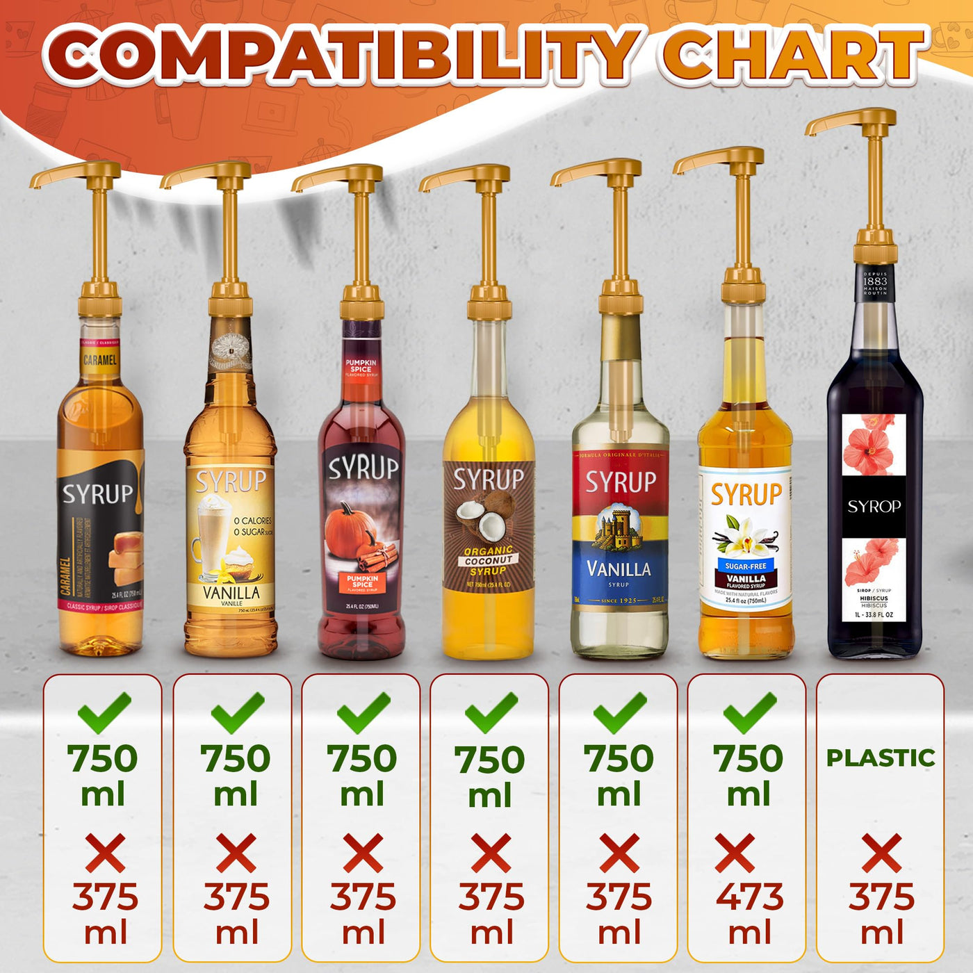 - Syrup Pumps for Coffee Bar: Designed for 25.4 oz (750ml) bottles, this bottle pump for coffee syrups has an extended straw for a precise fit. ⚠️CHECK PHOTO 2 FOR COMPATIBILITY BEFORE PURCHASE⚠️