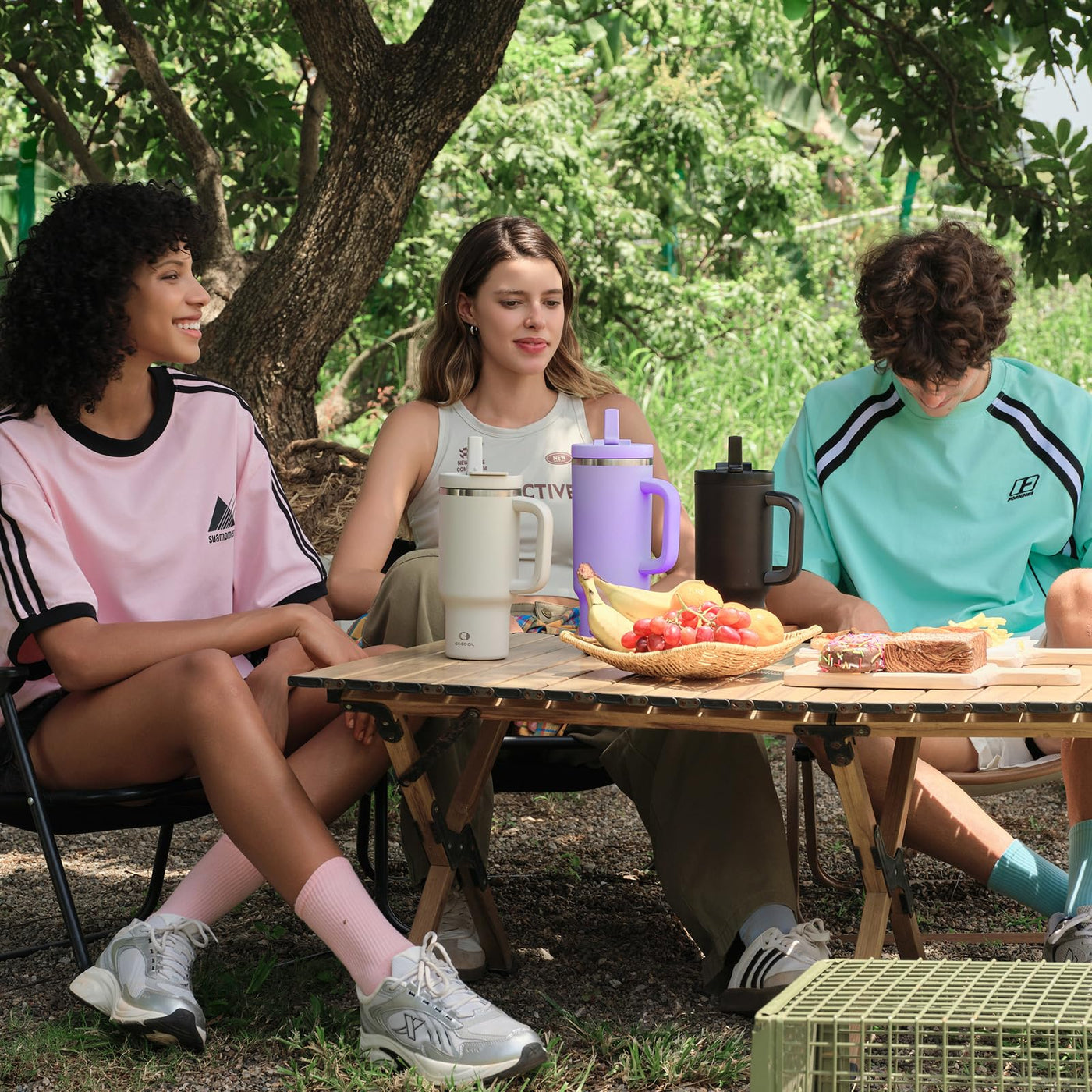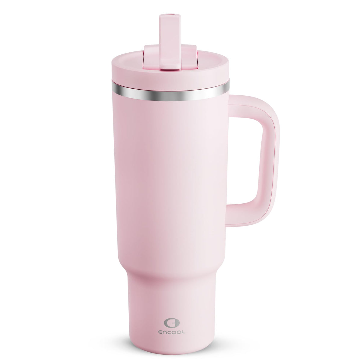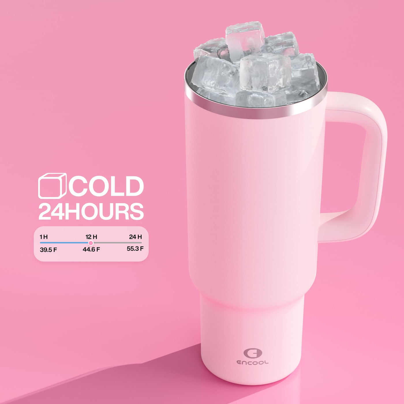 40 oz Tumbler with Handle and Straw: Stainless Steel Insulated Tumbler Keeps Cold for 24 Hours, Leakproof Travel Cup Fits in Cup Holder and BPA-Free, Cotton Candy Sale