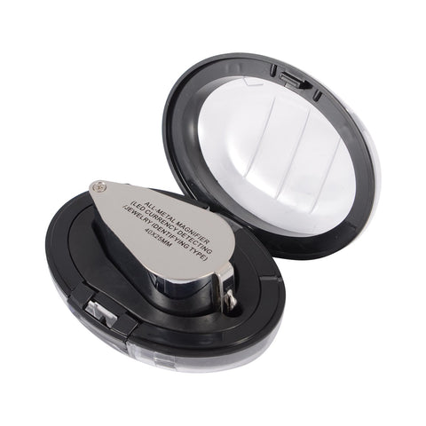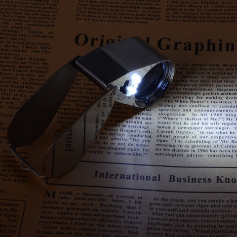 - This 40X magnifying glass Illuminated Jeweler Loupe is built from durable metal with an optical glass that is 25 mm in length and has a dual bright LED light.