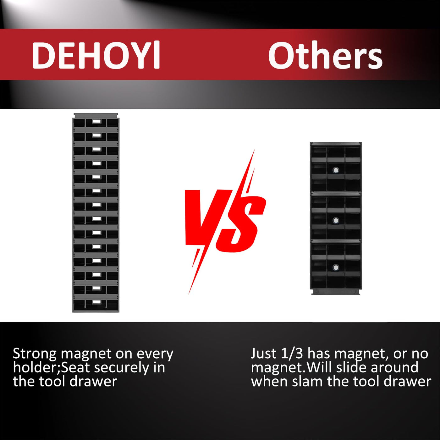 - Each Holder has Magnet: These magnetic help the holders attach to your metal tool drawer more steady. This not only reduces accidental dislodging or shaking during use but also help the holders remain in place, ready for quick access when needed.