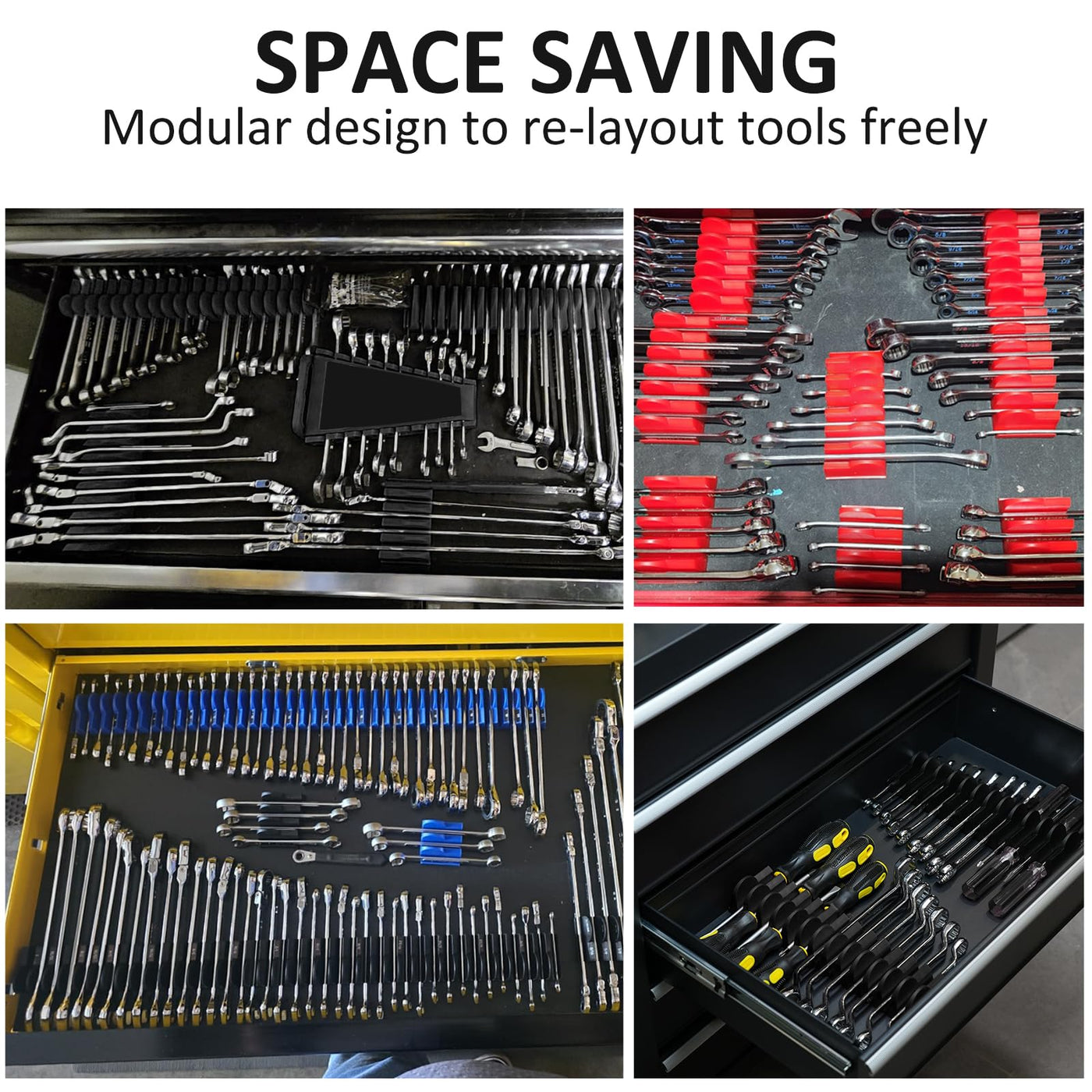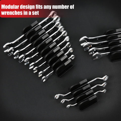 - Modular Design for Versatility: With its modular design, the wrench holders allow for easy customization by combining different numbers of brackets and support a wide range of wrenches, including offset wrenches, combination wrenches, open-end wrenches, short-handle wrenches, adjustable wrenches and ratcheting wrenches.