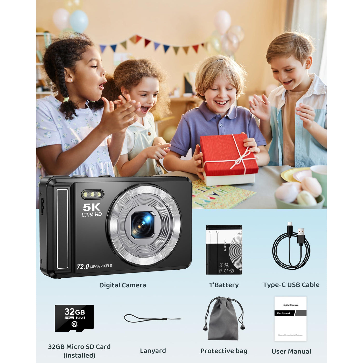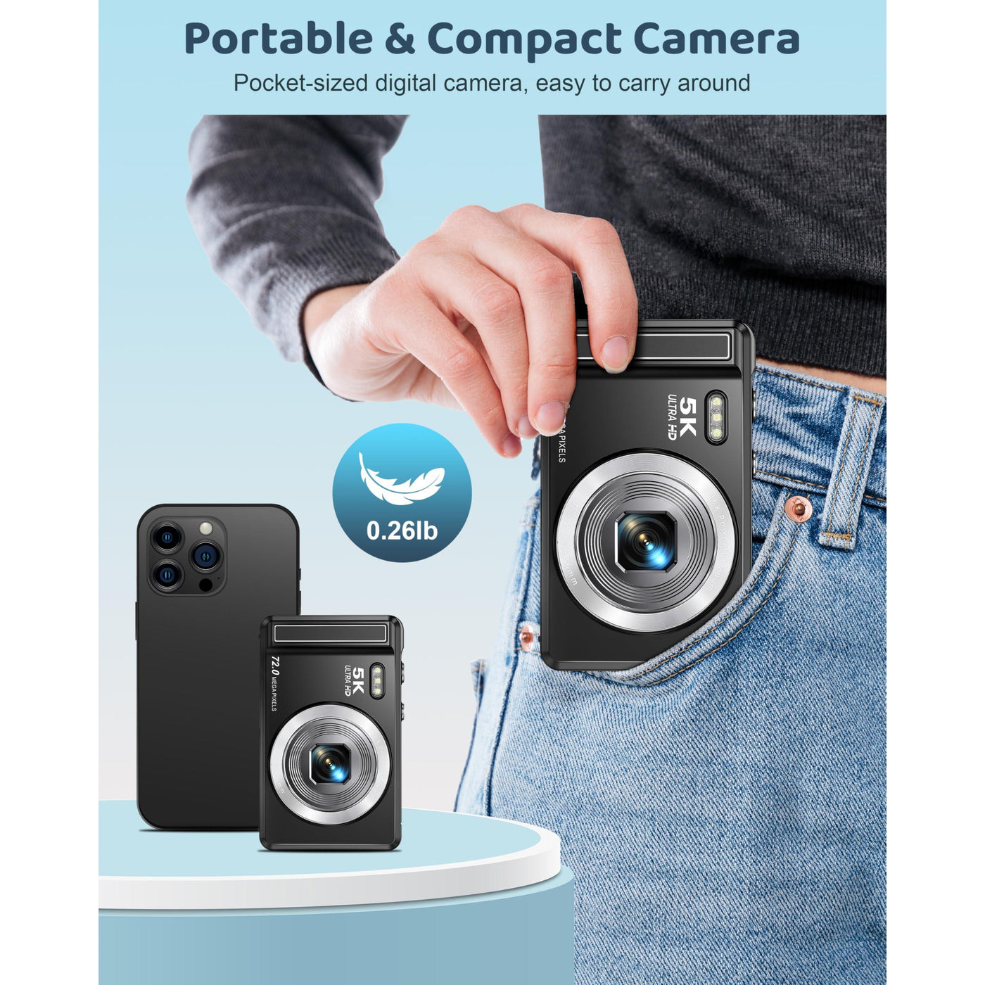 - UHD 5K 72MP Digital Camera - Capture stunning 5K ultra HD video and 72MP professional photos with this digital camera. The upgraded CMOS sensor ensures every detail is sharp, turning each moment into a vivid memory. With ultra-high resolution and smooth image quality, this 5K camera lets you shoot effortlessly—no complicated settings needed. Preserve your most unforgettable moments in stunning clarity