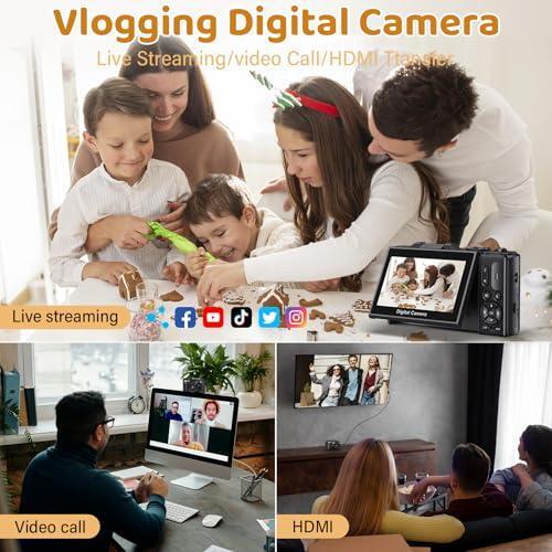 - 【Wireless WIFI & Webcam/Vlogging Function】The upgraded camera for YouTube features a built-in wireless Wi-Fi function, allowing you to instantly share videos and photos online via your cell phone. This vlog camera can also be used as a webcam for live streaming, video calls, and blogging, making it easy to stream or make video calls on YouTube, Facebook, Twitter, or other social media platforms.