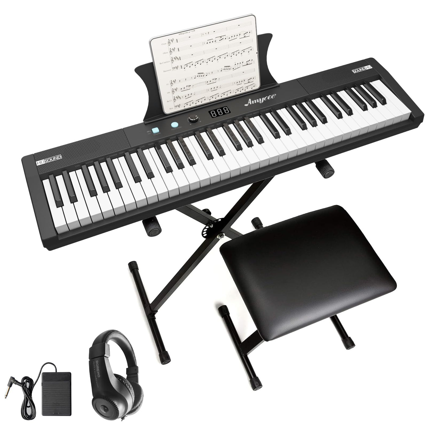 - 【Semi-Weighted Keys and Pedal】: Unlike other electronic keyboards, our electronic keyboard piano equipped with 61 semi-weighted keys, providing a more realistic piano key touch; It also comes with a modulation pedal, allowing you to adjust the tone for a softer sound.