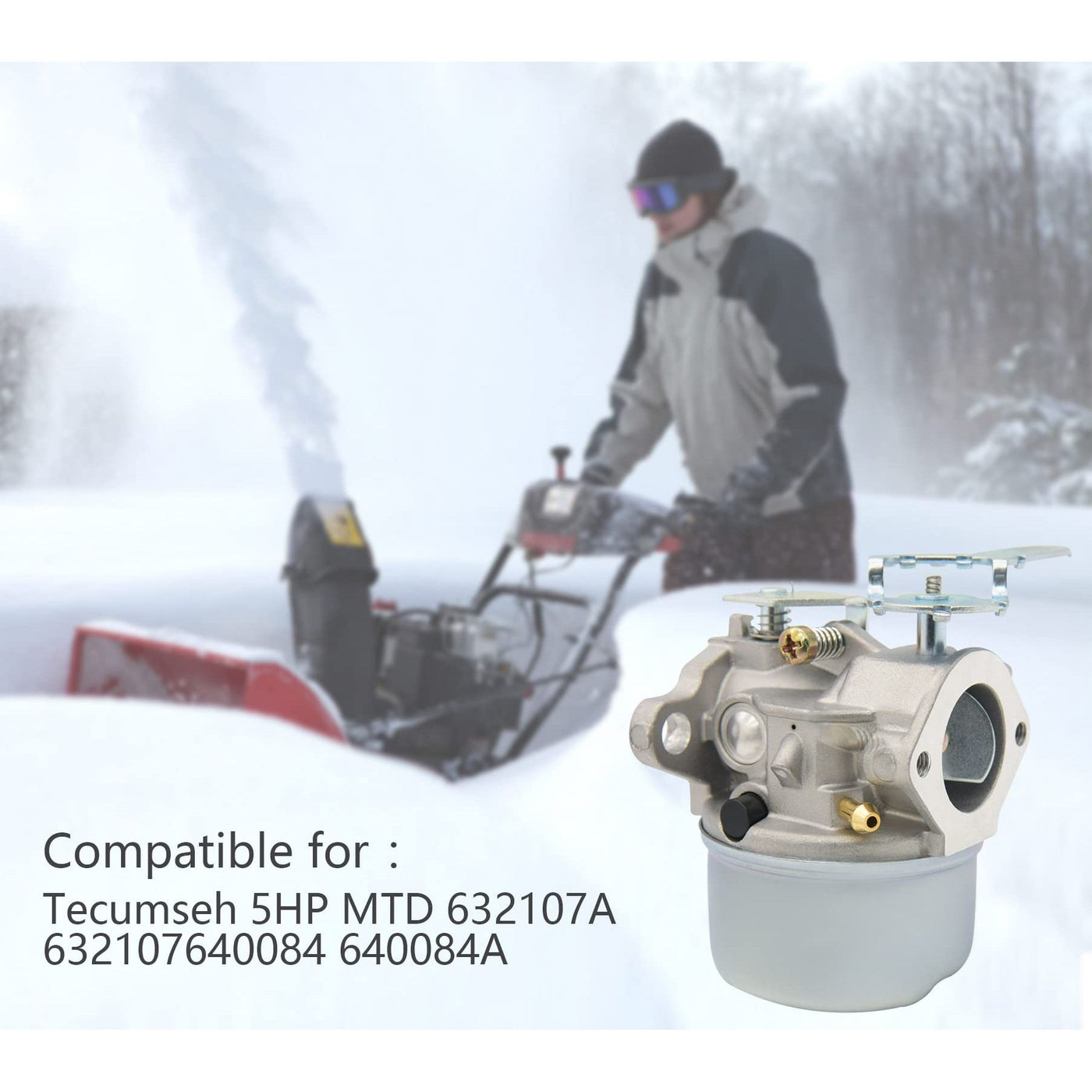 - 640084B Snow blower carburetor carb compatible for Tecumseh 5HP MTD 632107A 632107 640105 640299 640084 640084A. Mtd snow blower carburetor compatible with Craftsman Toro 38035 38052 38054 38052C 38035C 38056 3521 421 521 Snow Blower.