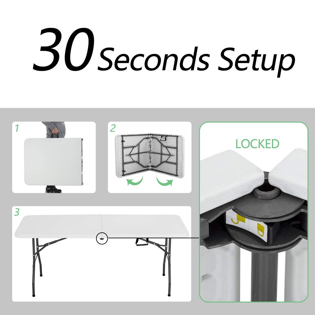 - No Assemble Needed:The picnic table come fully assembled and folded of the camping table.You only need open the box,take out of the plastic table.Then you can use it.
