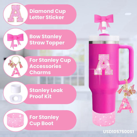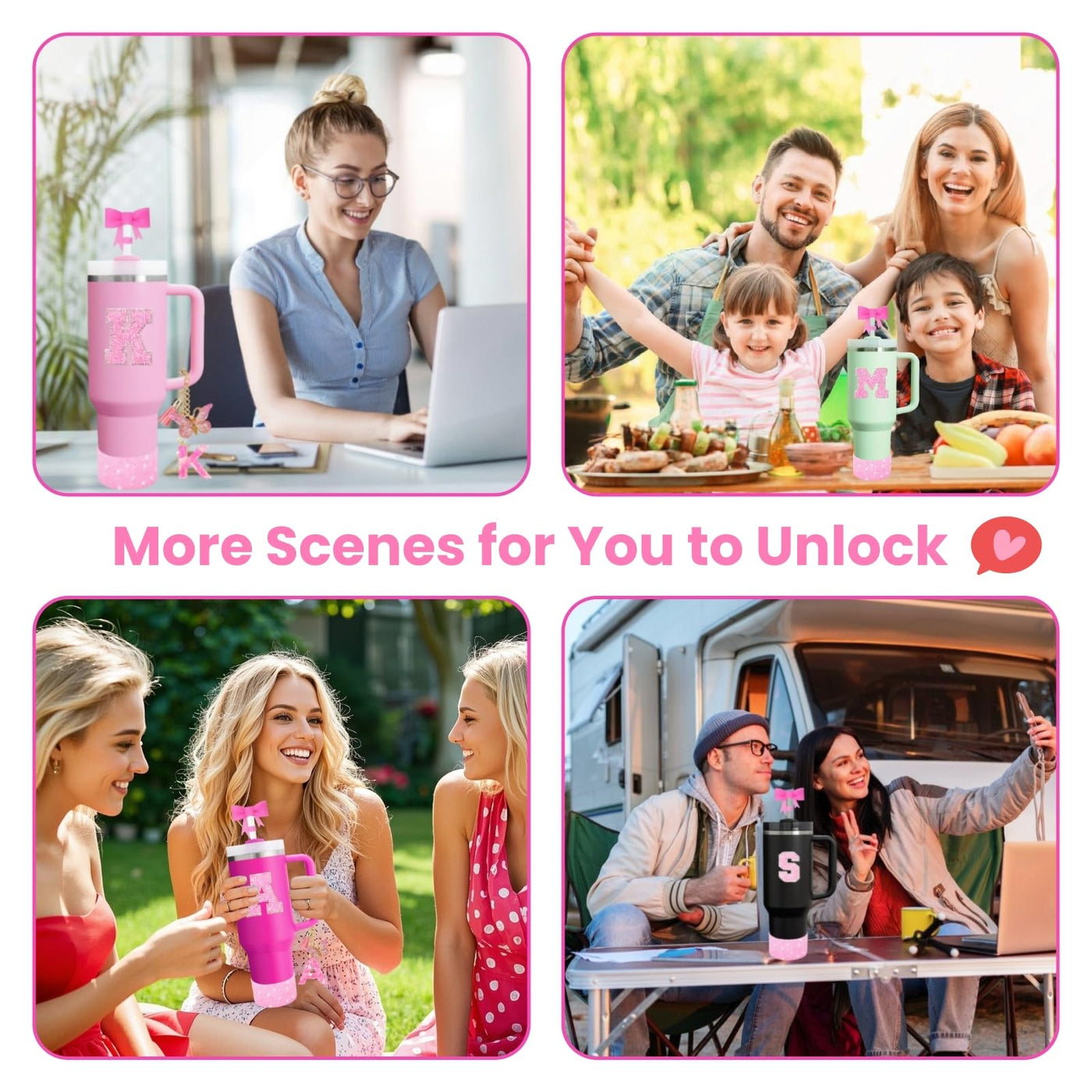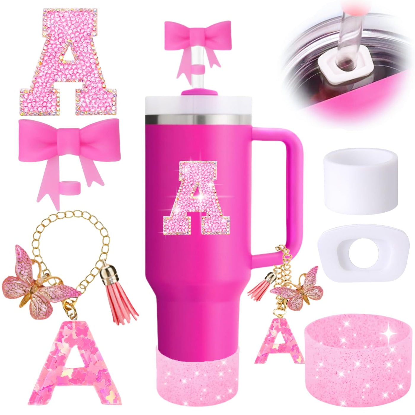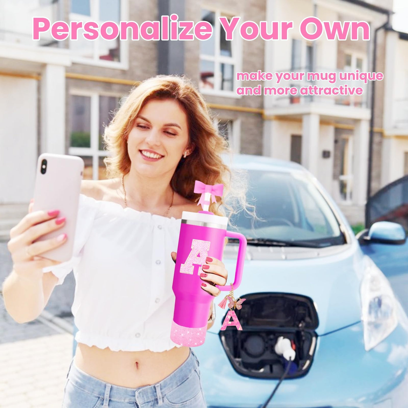 - 【Personalize Your Own】Choosing bling bling initials stickers and letter charms belonging to our stanley cup,make our stanley tumbler unique and more attractive! These cute pink stanley cup accessories add to the fun of using and make us love drinking water even more