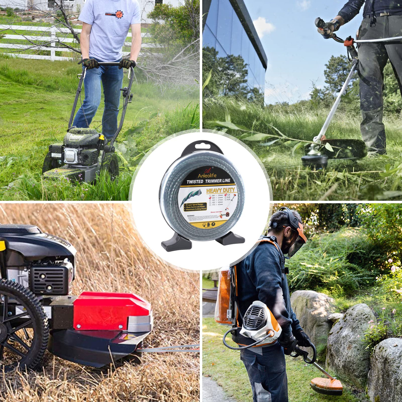 - 3-layer Square Twisted Trimmer line adds strength, improved efficiency and reduces noise levels and trimmer vibrations while giving you a clean, even cut