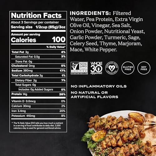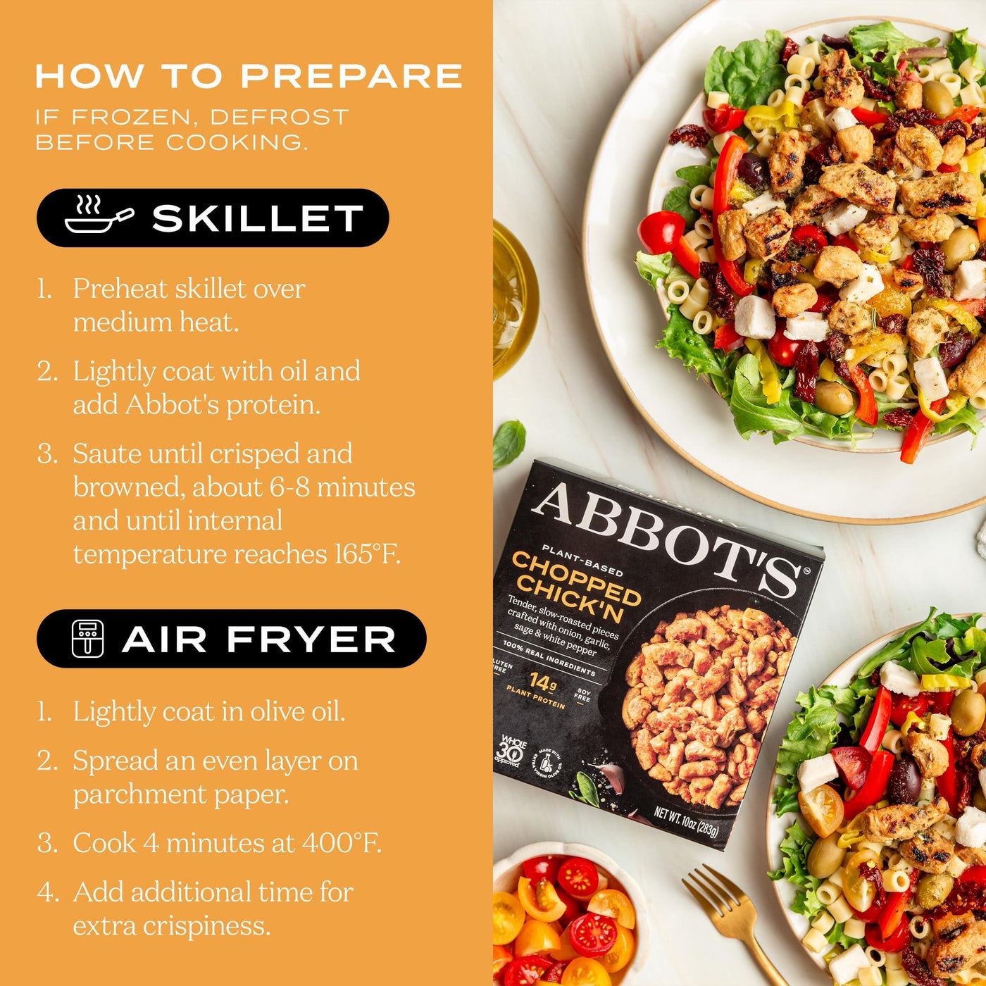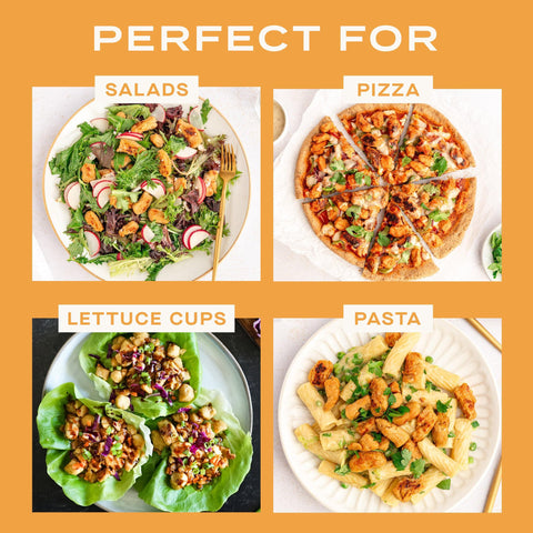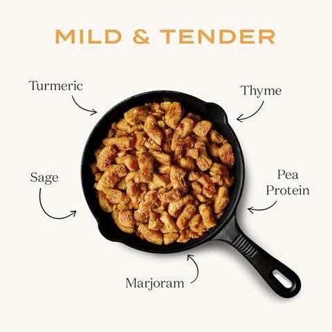 Details: This delectable Chick’n pairs a mild flavor with a robust, meaty tenderness. It browns nicely in a pan and stays tender when roasted.