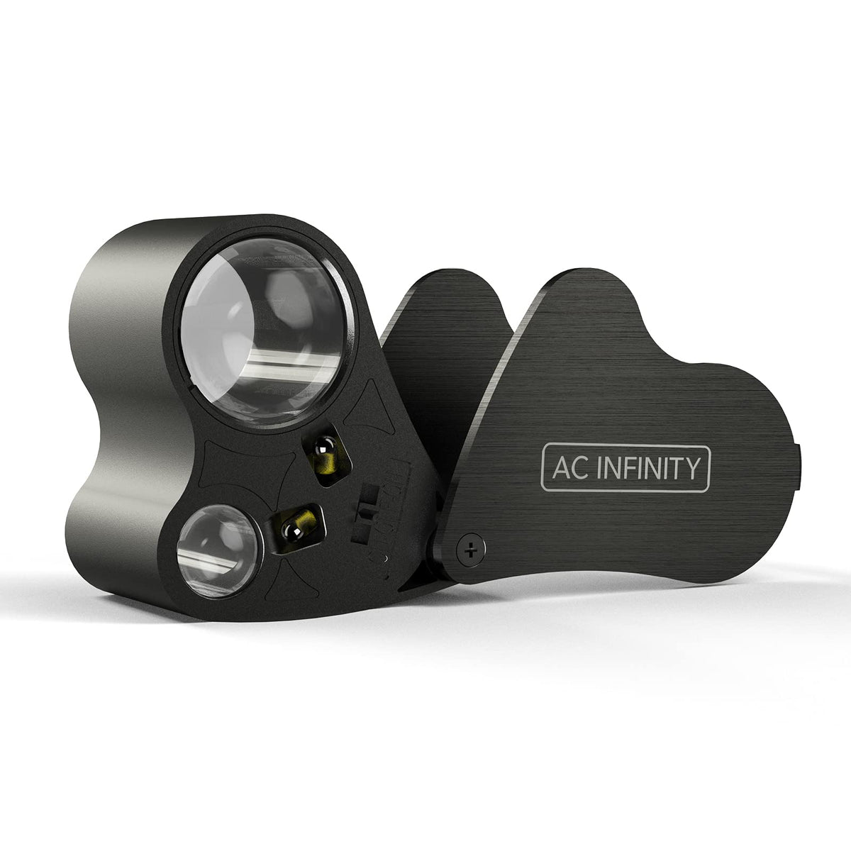 - Magnifier neatly folds into the aluminum swivel case and fits in pockets and other small compartments.
