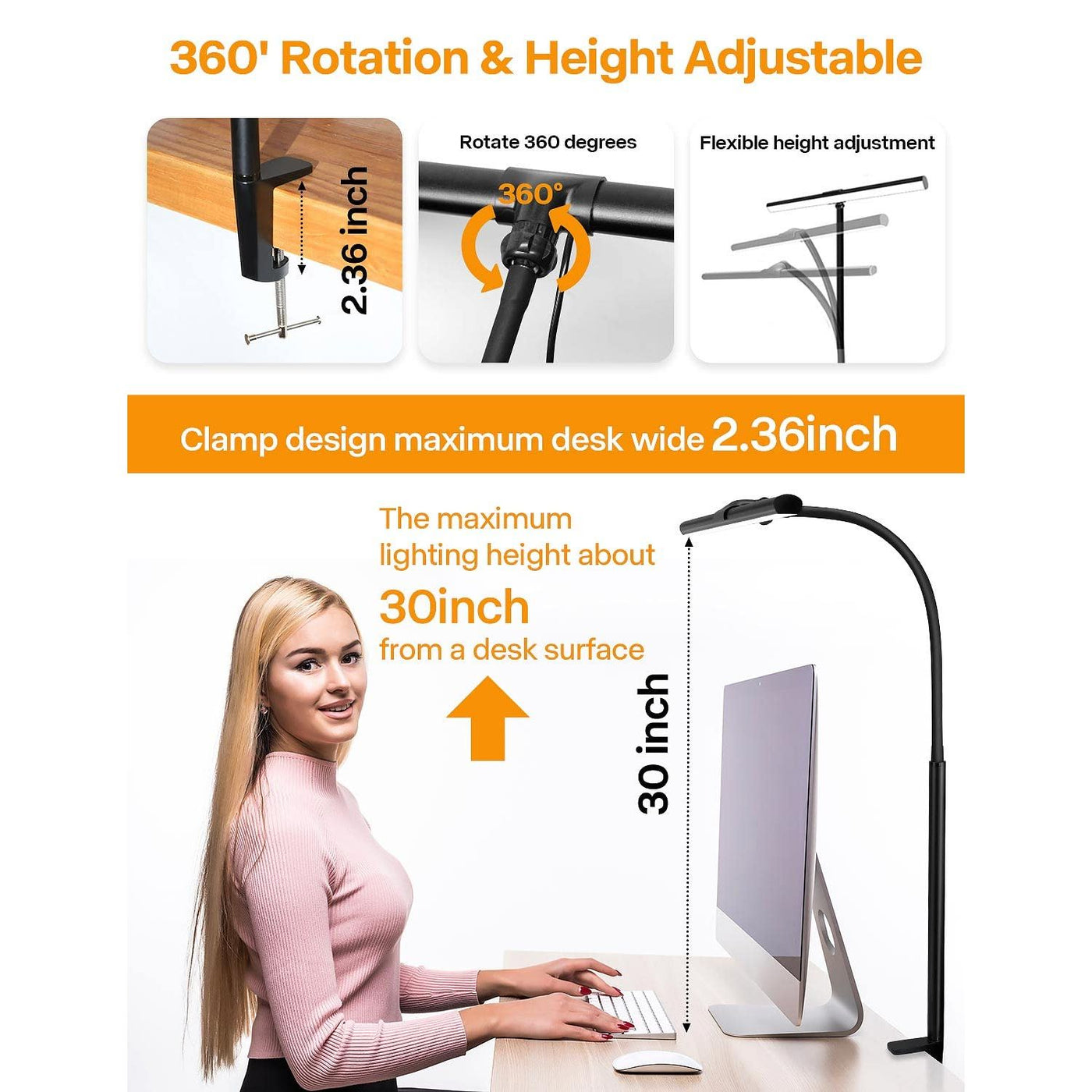ACNCTOP Desk Lamp for Office Home - Eye-Caring Architect Task Lamp 25 Lighting Modes Adjustable LED Desk Lamp Flexible Gooseneck Clamp Light for Workbench Drafting Reading Study Sale