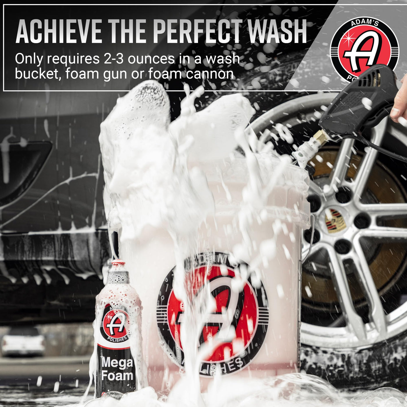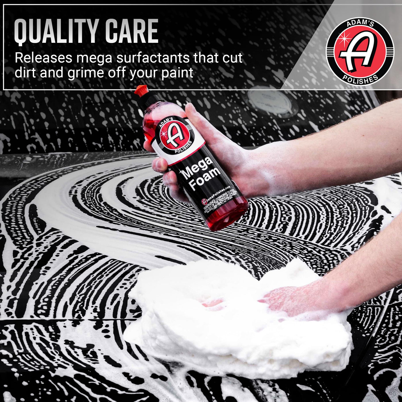 - ✅ CREATES A HUGE AMOUNT OF THICK, LUBRICATING SUDS SUDS SUDS - Adam’s Mega Foam Shampoo is designed for your foam gun or foam cannon providing the maximum amount of suds necessary to clean your vehicle without the chance of inducing scratches! With 10-times the normal concentration of standard soap formulas, Mega Foam provides the most chemically advanced foaming capability for your routine washes.