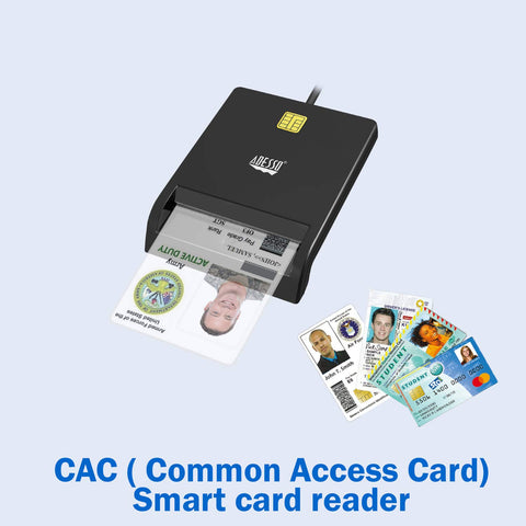 Details: The Adesso SCR 100, Smart Card Reader – is a TAA Compliant input device designed for GSA sales to government agencies, the military, their suppliers and vendors, and other organizations requiring end products manufactured to U.S. Trade Agreement Act Specifications. CAC USB Smart Card ReaderCAC ( Common Access Card) smart card reader is an easy-to-install USB device suited for all contact smart card operations like online-banking or digital signature applications. Card compatibilitySupport banks, post office, chip cards issued all over the country. It can be used for CAC (Common Access Card), Government ID, National ID.For all contact smart card operations like online-banking or digital signature applications: ActivClient, AKO, OWA, DKO, JKO, NKO, BOL, GKO, Marinenet, AF Portal, Pure EdgeViewer, ApproveIt, DCO, DTS, LPS, Disa Enterprise Email etc.Compatible with a wide variety of smart card operations for digital authentication and security, Network ATM transfer, payment, balance inquiries, Tax, water, electricity payment, Credit card bill payment, cash card payment. Specification:• EMV 4.0 Level 1 and PBOC2.0 Level 1 certified• CCID, CT/API, HBCI and CAC (Common Access Card) compatible• Supports USB 2.0 full speed, USB-IF certified• Based on ISO7816 implementation• Supports PC Smart Card industry-standard -PC/SC 2.0• Supports Microsoft Smart Card for Windows• Meets Microsoft WHQL USB Smart Card Reader requirements• Meets US Federal Information Processing Standards (FIPS) Publication 201 requirements onsmart card reader interoperability• Smart Card Reader supports T0, T1 Protocol• Supports ISO7816 Class A, B, and C (5V/3V/1.8V) card• Supports EEPROM for USB descriptors customization(PID/VID/iManufacturer/iProduct /Serial Number),Direct Web Page Link, and accessing memory card module• Dimension: 2.5” x 3.3” x 0.375” ( 65x 85 x 9.5mm)• Weight: 2.12 OZ (60g) Requirement:• Windows 10/8/7 Vista/XP/2000,• Mac OS X 10.6 & above