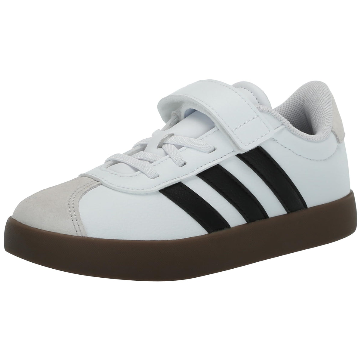 adidas VL Court 3.0 Elastic Lace & Strap Sneaker, White/Black/Grey, 2 US Unisex Little Kid Sale