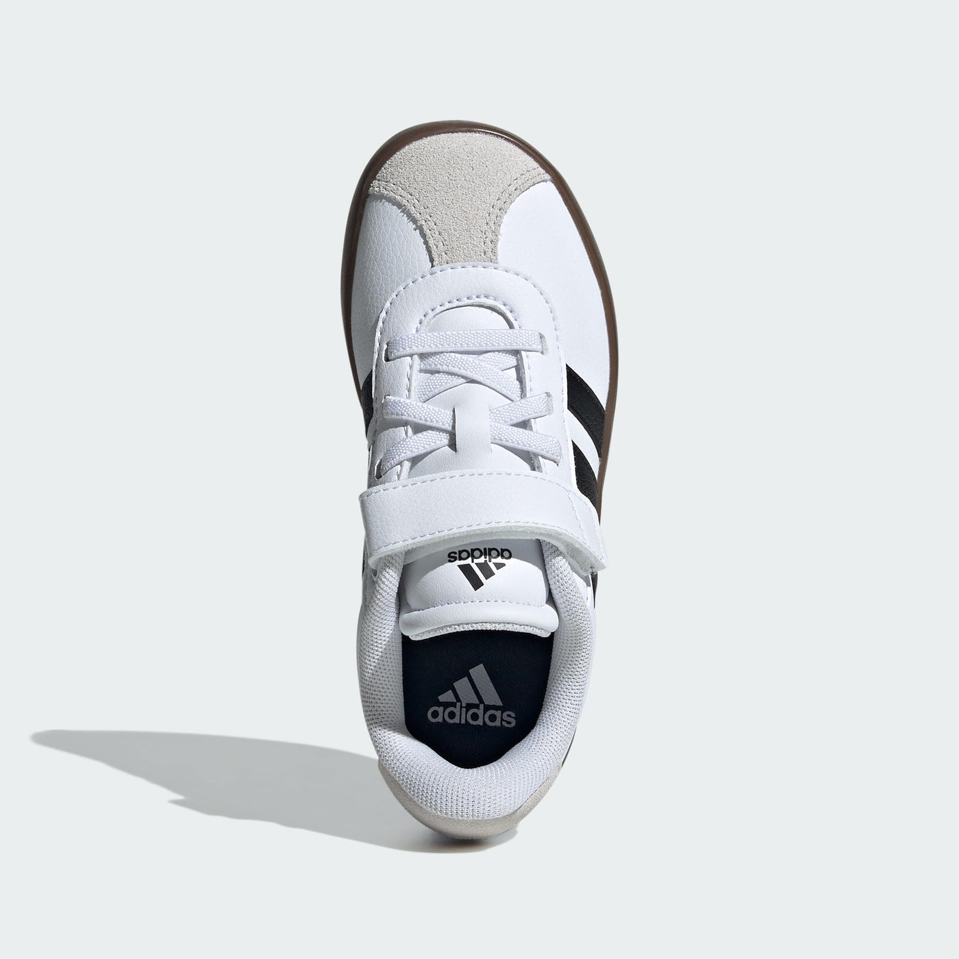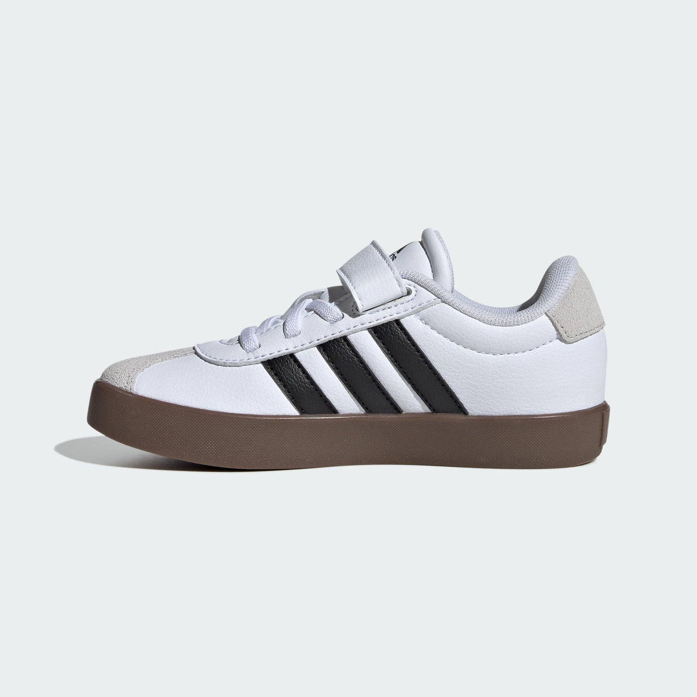 adidas VL Court 3.0 Elastic Lace & Strap Sneaker, White/Black/Grey, 2 US Unisex Little Kid