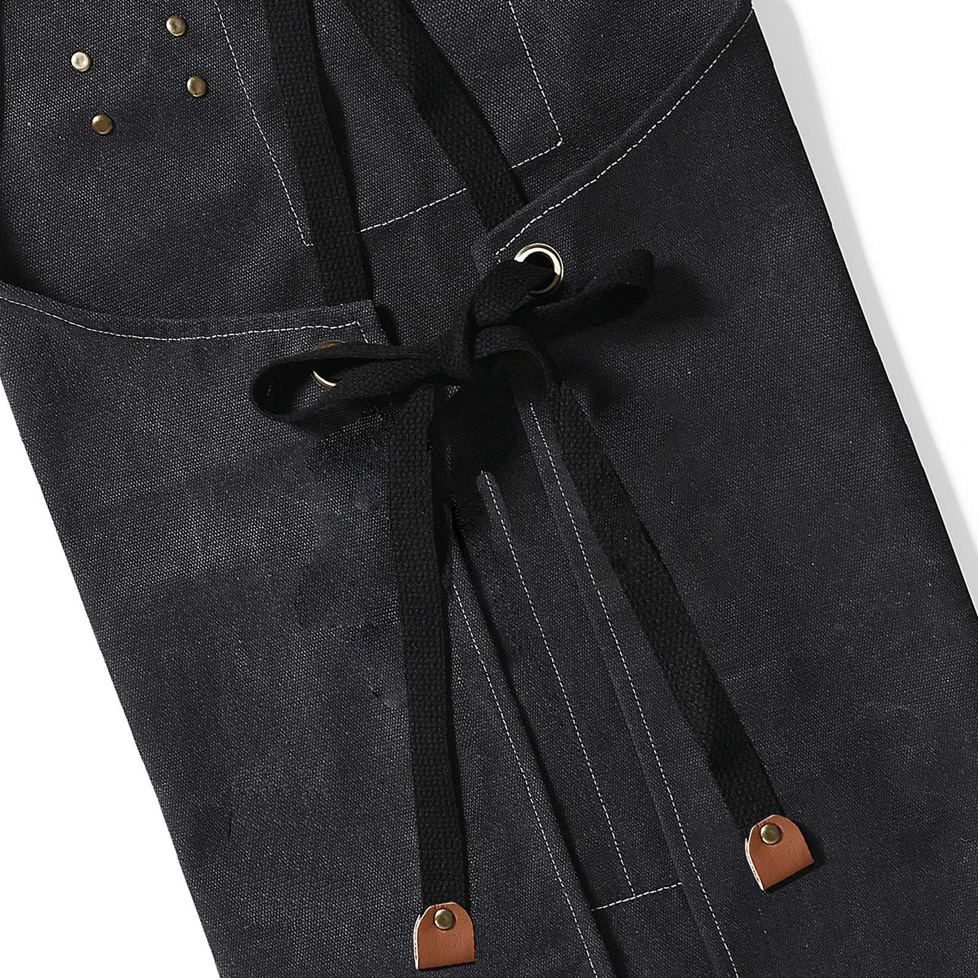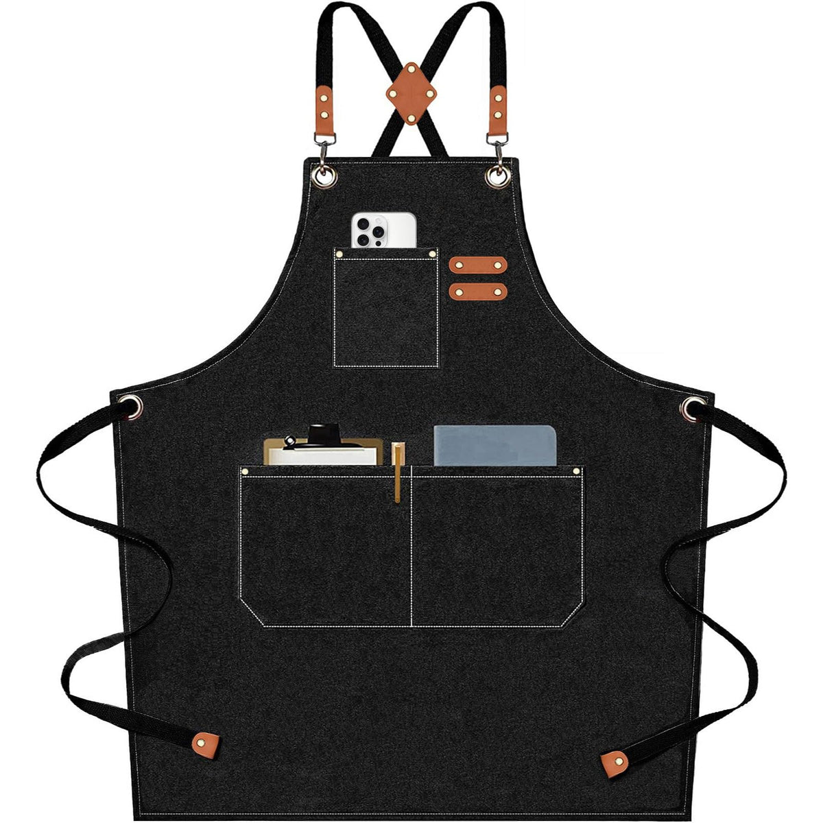 AFUN Chef Aprons for Men Women with Large Pockets, Cotton Canvas Cross Back Heavy Duty Adjustable Work Apron, Size M to XXL (Black)