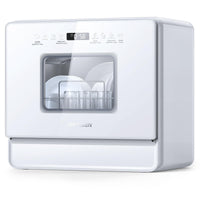 - Convenient LED Display: The compact dishwasher features an intuitive LED touchscreen and transparent double-layer glass doors with interior lighting, allowing real-time monitoring and easy loading/unloading.