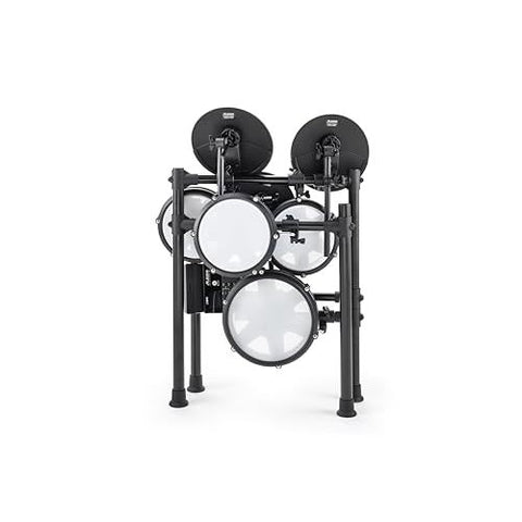 - Genuine Performance Feel - Now bigger 10” dual-zone mesh snare, (3) 8” mesh toms, kick drum tower with pedal and (3) 10" cymbals: ride, hi-hat with foot controller, crash with choke, on a solid foldable rack