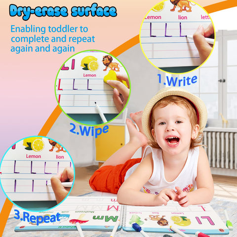 - Erasable & Reusable & Safe Learn To Write Workbook for Toddler: The Montessori busy workbook is extremely attractive and repeatable activities allow your child to learn and practice all the contents of the book unlimited times. The handwriting practice book is easy to wipe, the children complete the entire game system independently. They can easily build their confidence, including improving children's letter recognition, spelling, and word formation, and help early vocabulary recognition