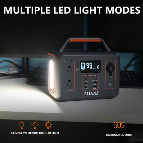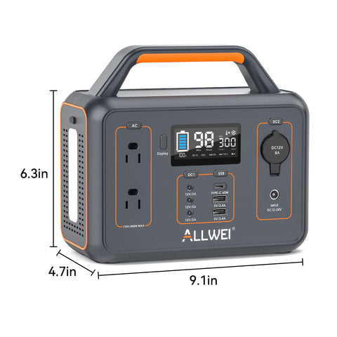 - 【Package Contents】1x ALLWEI 300W/280Wh Portable Power Station, 1x AC Power Adapter, 1x AC Cable, 1x DC Car Cable, 1x User Manual (ALLWEI Solar Panel sold separately).