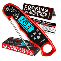 - Easy-Read Digital Thermometer For Cooking | Large instant thermometer dial with bright blue backlight means you can always read the temperature, whether you are grilling in the dark or baking in your kitchen. Perfect must have grilling accessory for kitchen essentials.