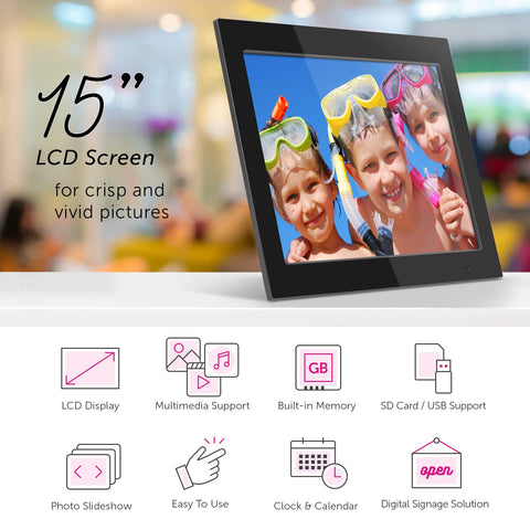 Aluratek 15" LCD Digital Photo Frame w/4GB Built-In Mem & USB SD/SDHC Support (ADMPF315F) Sale